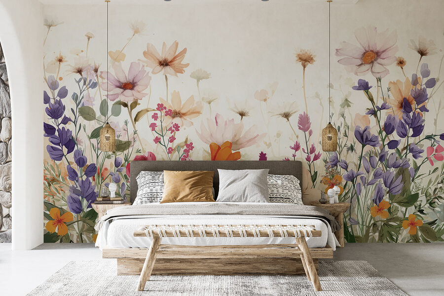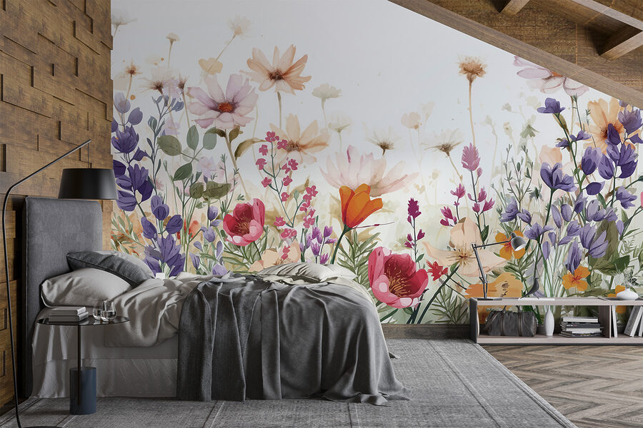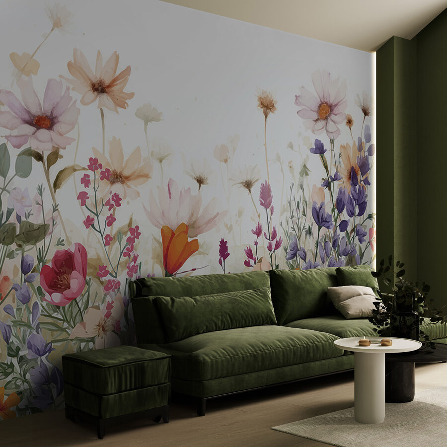 Seguro que sí. Imagina que entras en una habitación donde la naturaleza susurra a tu alrededor. Este mural -sí, un precioso grupo de flores de acuarela sobre un limpio fondo blanco- es como tener un mini jardín dentro de casa. Perfecto para alegrar cualquier pared aburrida, tiene ese aire relajante de una suave mañana de primavera. Ya sabes, de esas que te hacen querer tomar un té y olvidarte de todas tus preocupaciones. Es un toque de alegría, una pizca de color, y puede ser el estímulo que tu espacio necesita para sentirse como en un acogedor refugio.