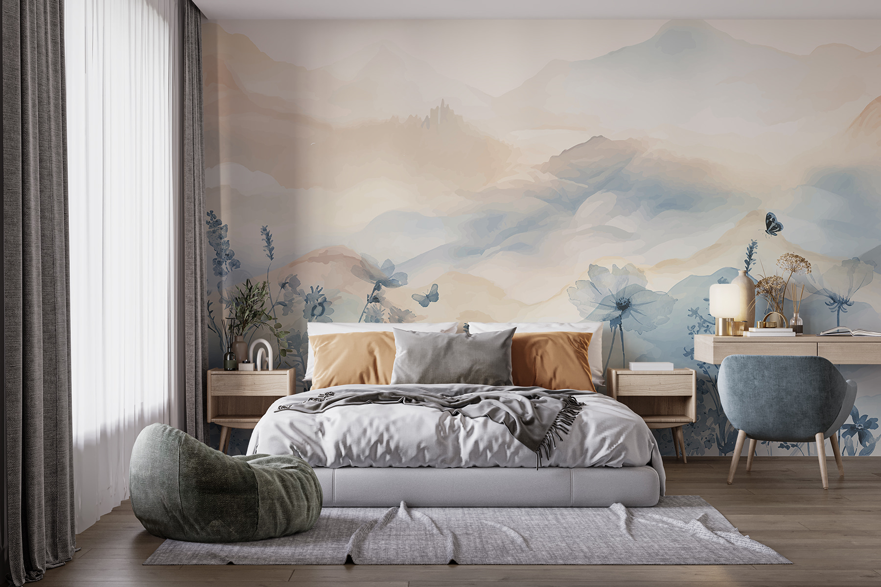 Imagínese que entra en una habitación donde las paredes cuentan una tierna historia: este mural de acuarela hace exactamente eso. Es como estar envuelto en un mundo suave y de ensueño donde las flores florecen y las mariposas revolotean delicadamente. Perfecto para cualquier amante de la naturaleza o para cualquiera que desee un toque de fantasía en su vida. Imagínatelo en un acogedor rincón de lectura o en tu dormitorio; de repente, el espacio cobra vida. No es sólo arte, es una pequeña escapada sin salir de casa. Es tan apacible que puede que oigas a las mariposas susurrando secretos.