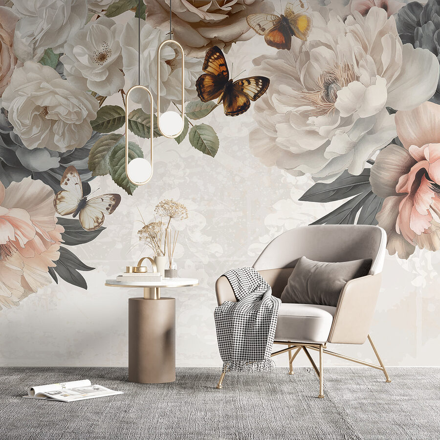 Imagine entrar en una habitación y sentir que acaba de entrar en un jardín de ensueño con una ligera brisa en la cara. Este mural de pared “Grupo de flores con mariposas” no es sólo decoración, es una escapada. Rosas y peonías bailan alrededor, mientras las mariposas revolotean añadiendo un toque de fantasía. Perfecto para cualquiera que piense que las paredes deben hacer algo más que sostener el techo: también deben susurrar historias. Hace que la vida cotidiana parezca un poco menos ordinaria y mucho más hermosa. Ideal para espacios que buscan un toque de encanto natural.