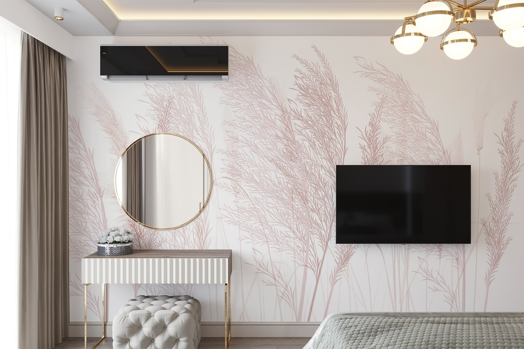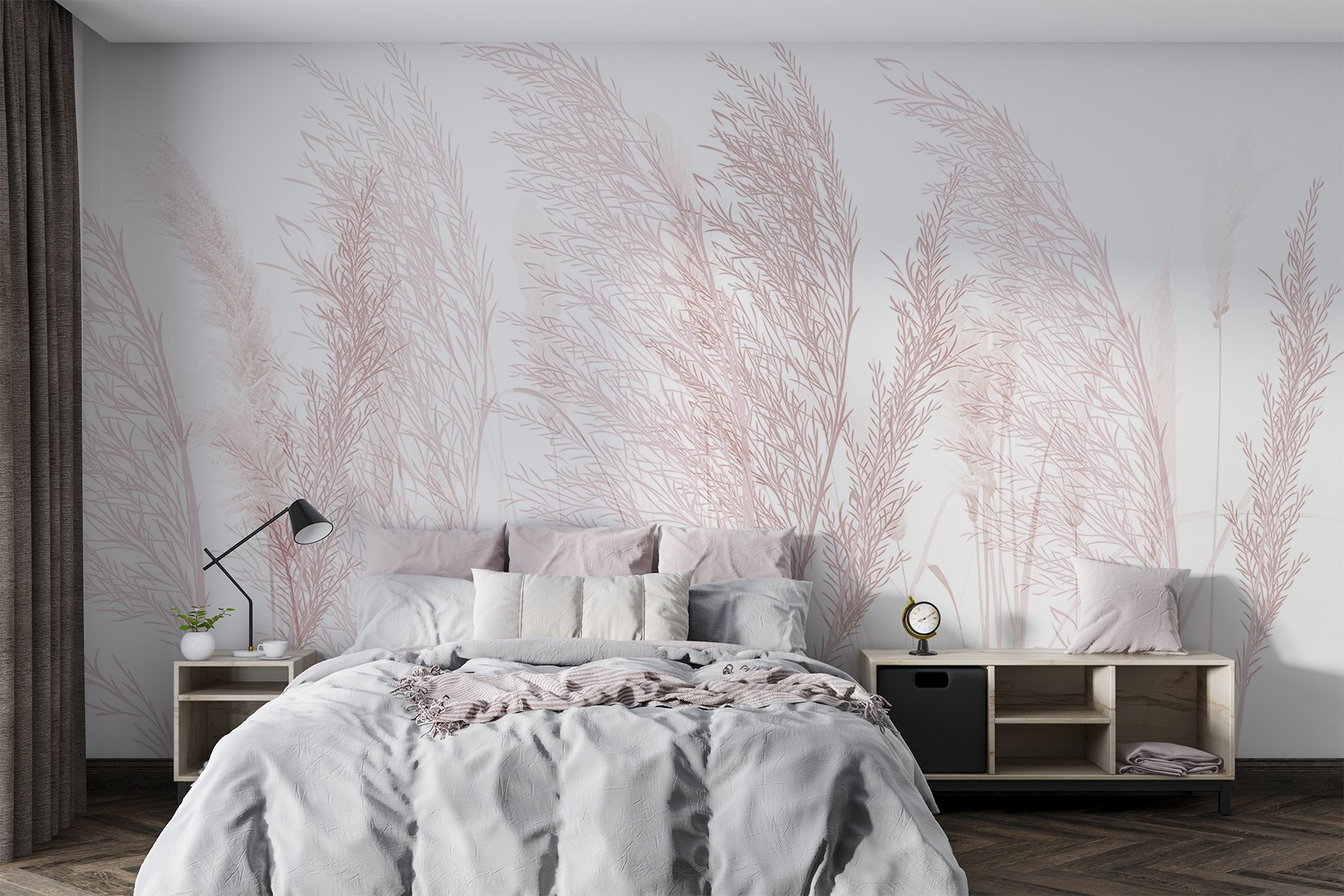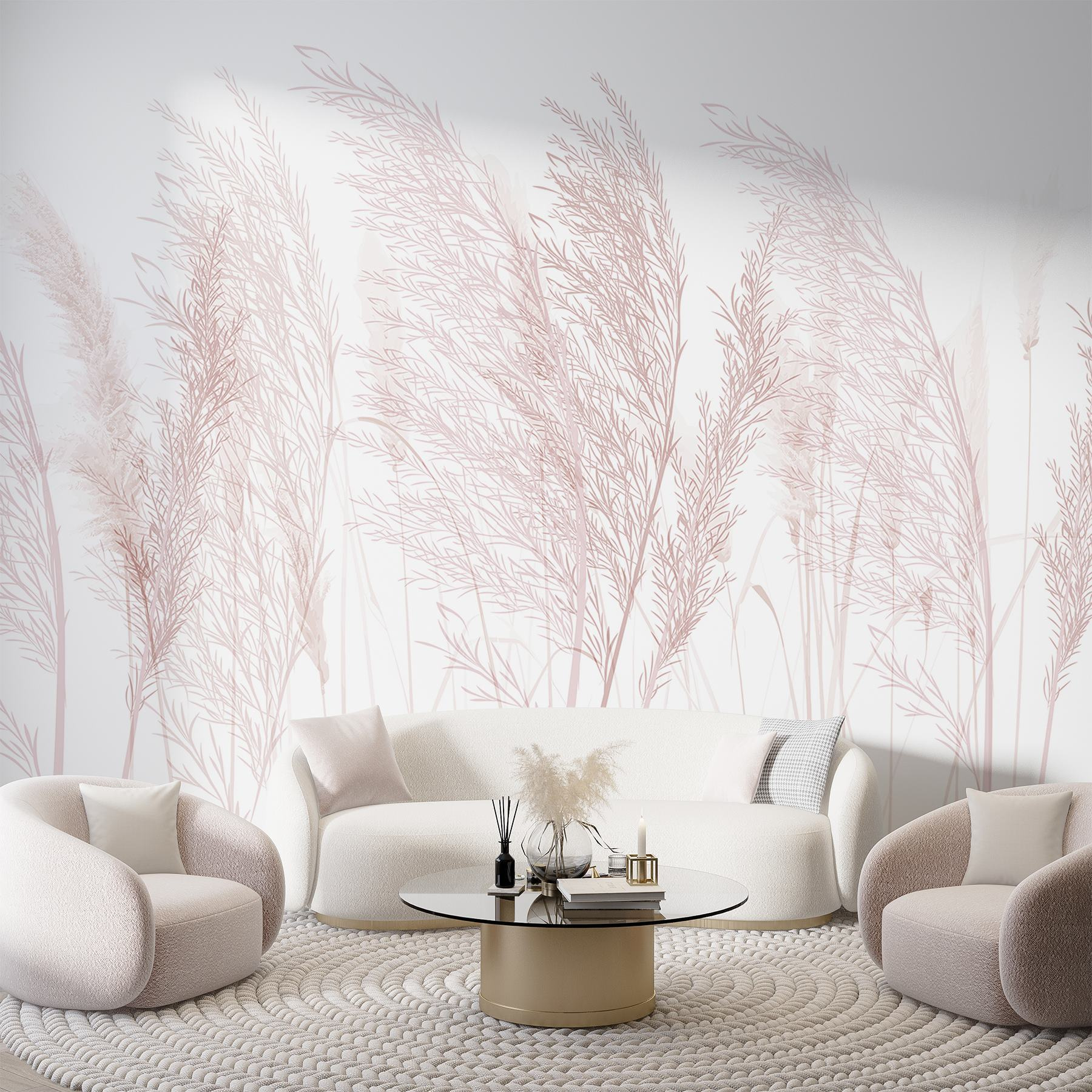 Imagínese esto: una suave brisa susurrando a través de un campo, donde se mecen tenues hierbas y diminutas flores rosas se asoman tímidamente. Este mural, con su sutil belleza, transforma cualquier habitación en un apacible refugio inspirado en la naturaleza. Es el tipo de cosa que te hace hacer una pausa, respirar hondo e incluso sonreír, sintiendo un poco de calma en medio del caos. Perfecto para cualquiera que desee un poco de aire libre en el interior. Además, es un telón de fondo encantador para soñar despierto, ¡sólo hay que ver cómo bailan esas flores en la pared!
