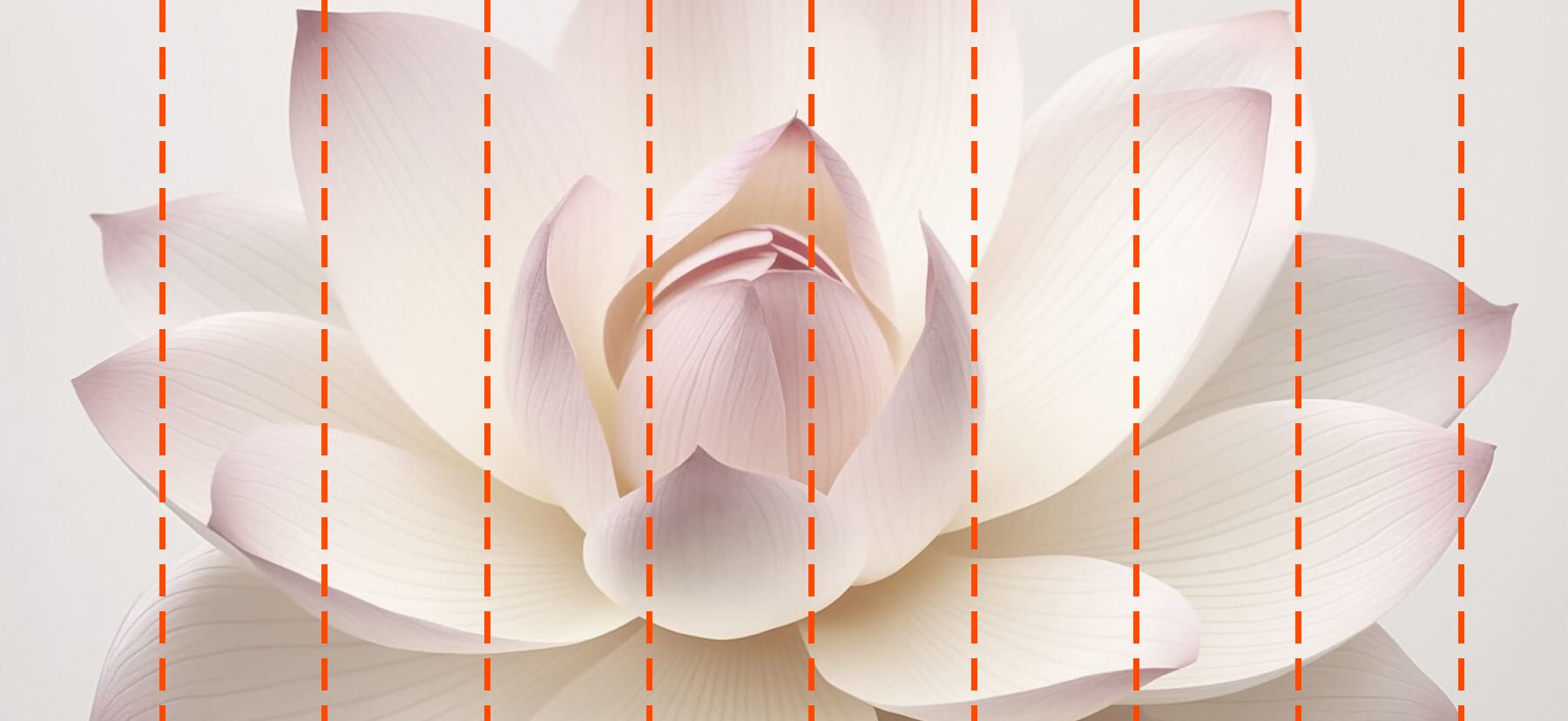 Tu papel pintado se preparará según las dimensiones que nos hayas facilitado durante el proceso de pedido. El lienzo se dividirá en cómodas secciones de hasta 50 cm de ancho cada una.