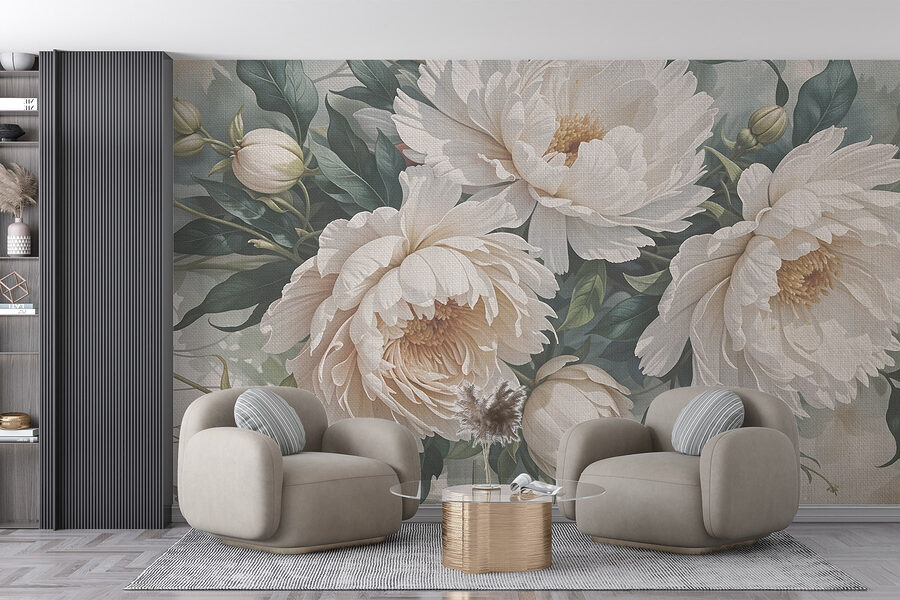 Transforme cualquier espacio con el encantador mural “Delicate Blooms in Soft Hues”. Imagínese entrar en un jardín sereno donde las peonías florecen en susurros suavemente sombreados de blanco y verde. Este diseño no sólo aporta belleza, sino un aire de calma que se siente como un suave abrazo después de un largo día. Perfecto para un rincón de lectura acogedor o un dormitorio de ensueño, es como tener un trozo de naturaleza en el interior. Los amigos pueden pasarse por allí, admirar tu pared y, de repente, ser tú el anfitrión con más… ¡buena suerte para evitar que se muden! Añade un toque de elegancia a tu decoración, porque ¿a quién no le gustaría tener un amigo florido en su pared?