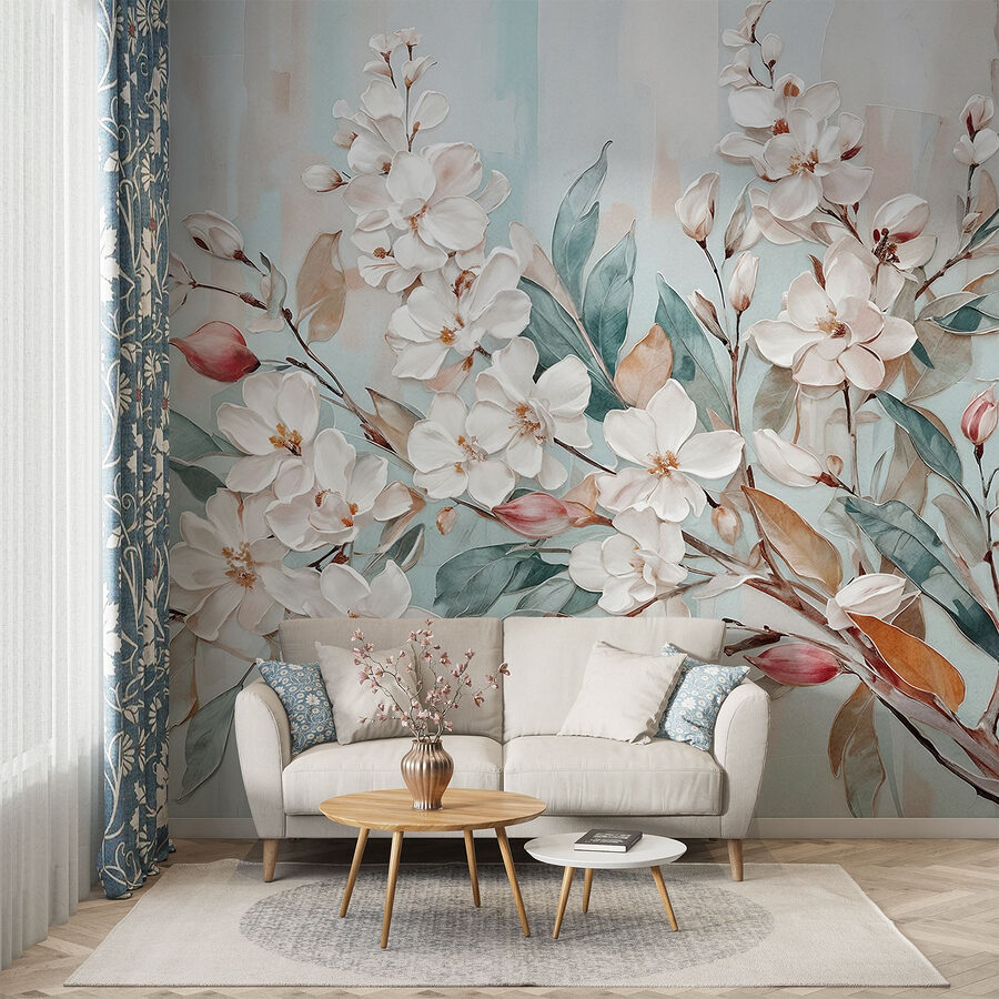 Transforme su espacio con este impresionante mural de pared con flores sobre un fondo azul de ensueño. Imagina despertarte cada día con delicadas peonías y juguetones capullos, trayendo un trozo de un tranquilo jardín japonés a tu hogar. Los tonos suaves crean un ambiente tranquilo, perfecto para un rincón de lectura acogedor o para esa pared vacía que ha estado pidiendo vida. Tus amigos elogiarán tu elección artística y tú te preguntarás en secreto cómo has podido vivir sin esta escapada floral. Cada mirada puede inspirar una sonrisa o una ensoñación. ¡Hablando de terapia floral!