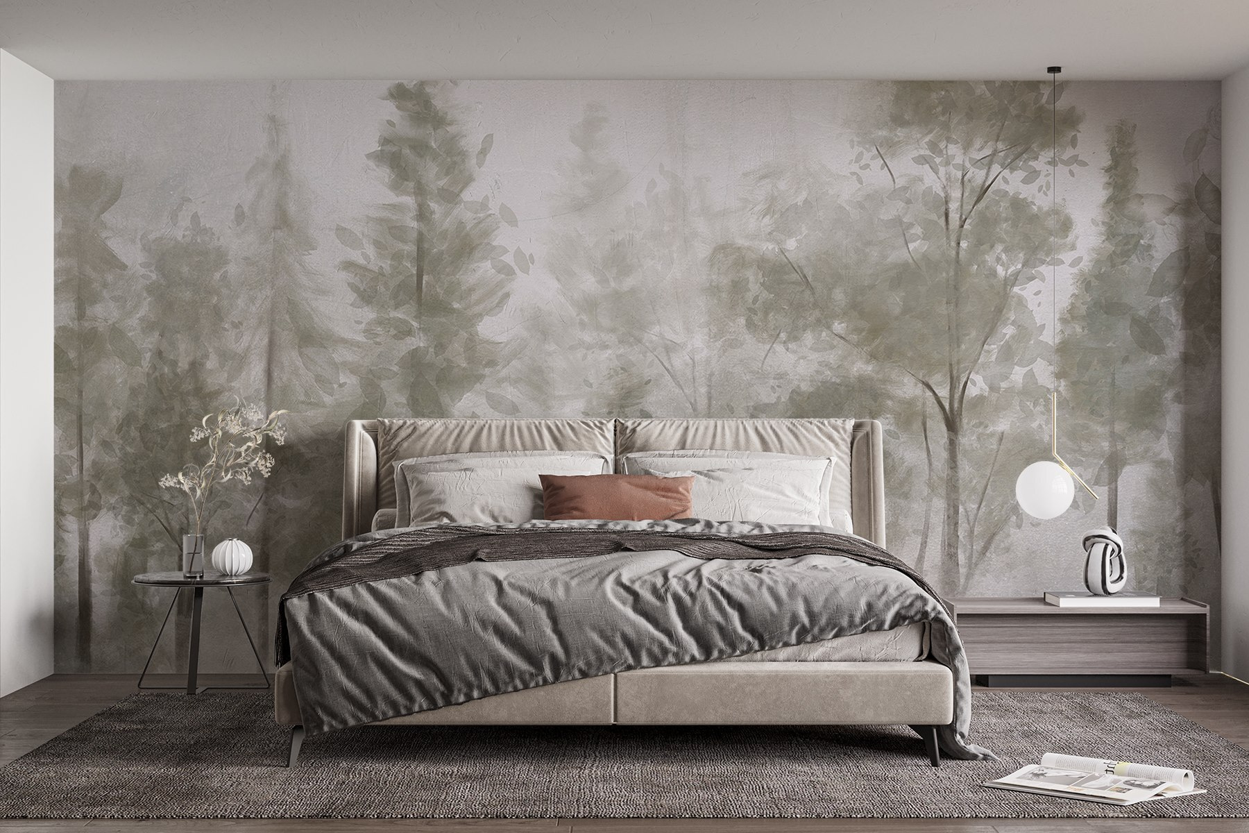 Adéntrese en un bosque de ensueño con este impresionante mural de pared, “Grupo de árboles en la niebla”. Es como traer un bosque sereno directamente a su casa, sin las botas llenas de barro ni las picaduras de mosquitos. Imagínese despertarse con una vista suave y brumosa, el ambiente perfecto para un rincón acogedor o un dormitorio tranquilo.