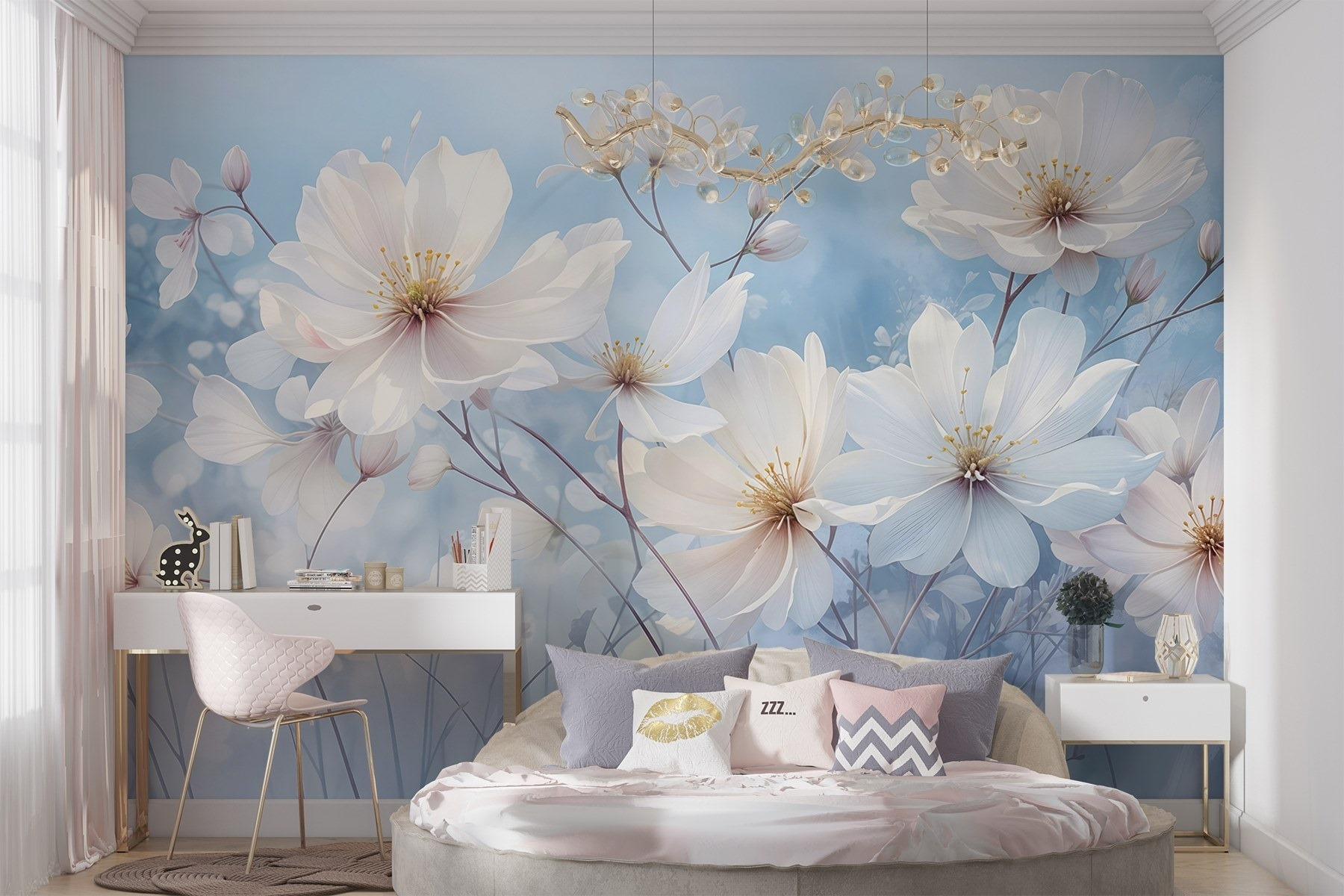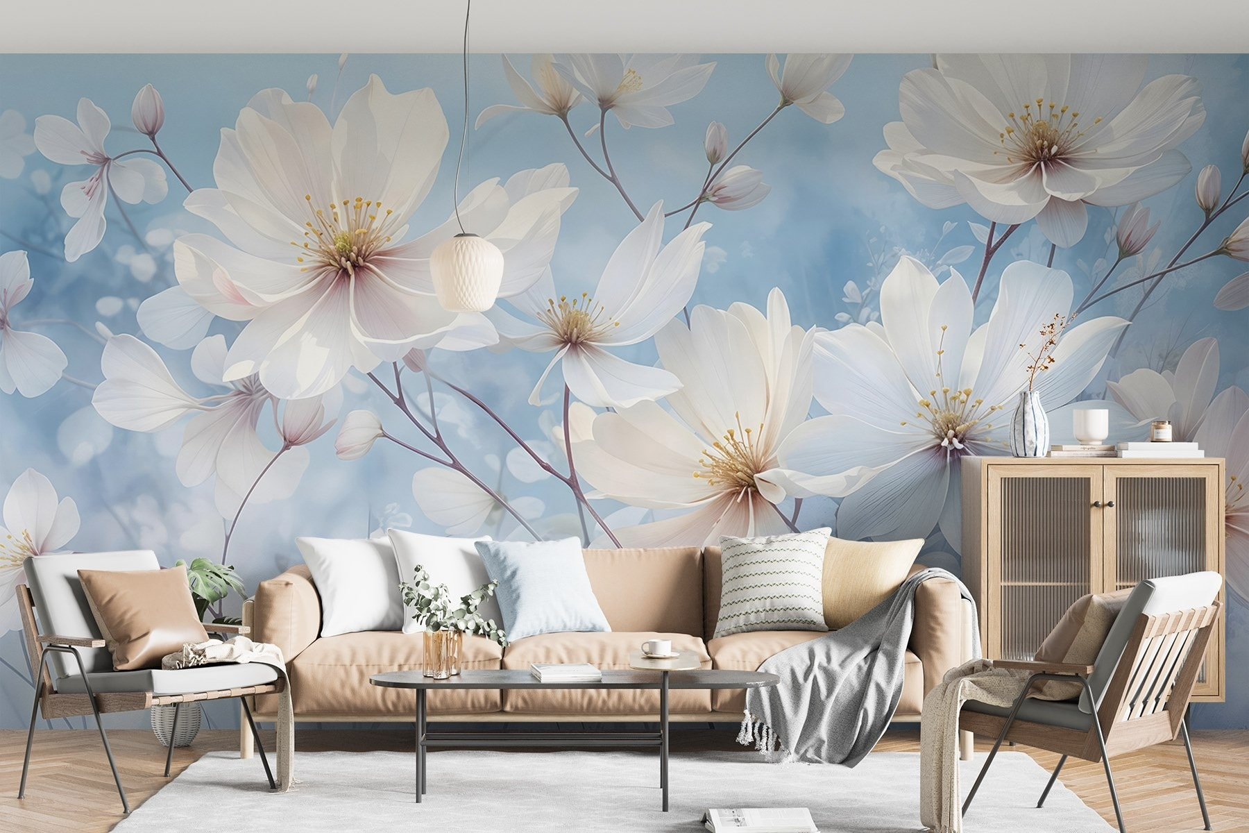 Transforme cualquier habitación en un oasis de serenidad con este “Grupo de murales de flores blancas”. Imagínatelo: una brisa suave y apacible que fluye a través de las ventanas abiertas mientras estas delicadas flores aportan un aire de calma y encanto a tu espacio. El efecto de acuarela suaviza los bordes y combina a la perfección con su decoración, creando un telón de fondo tranquilo que invita a soñar despierto. Imagínese tomando su café matutino, sintiéndose como si estuviera en un encantador jardín, aunque sólo sea su acogedor salón. Es el tipo de mural que dice: “Sí, la vida es muy dulce”, sin ni siquiera intentarlo. Perfecto para cualquiera que desee un toque de naturaleza en su interior, este mural es como un cálido abrazo en un día frío. Así que, ¿por qué no dejar que estas preciosas flores alegren tu pared?