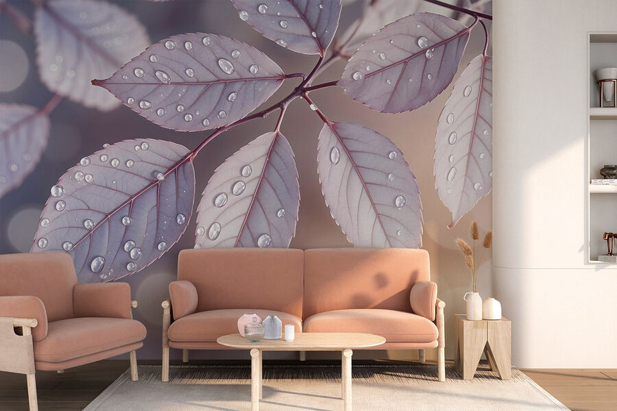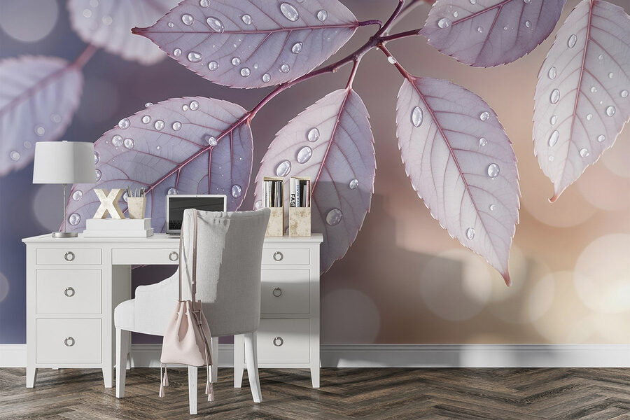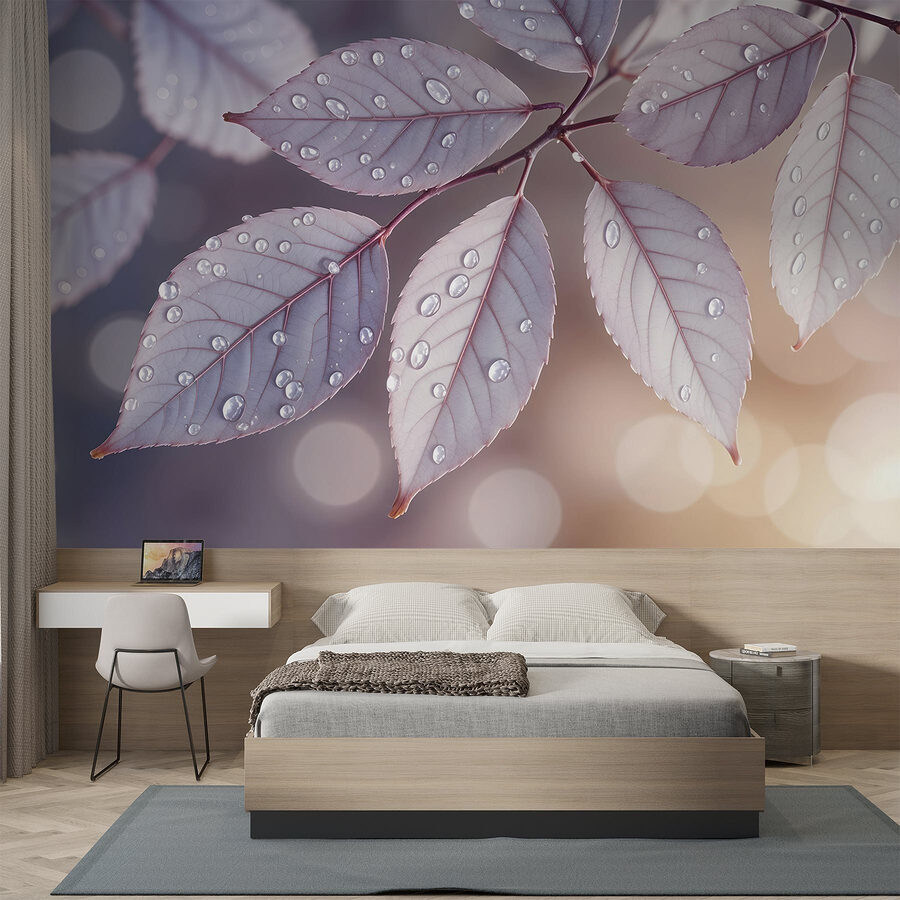 Fotomurales Delicadas hojas adornadas con gotas de lluvia (SKU: w08419)