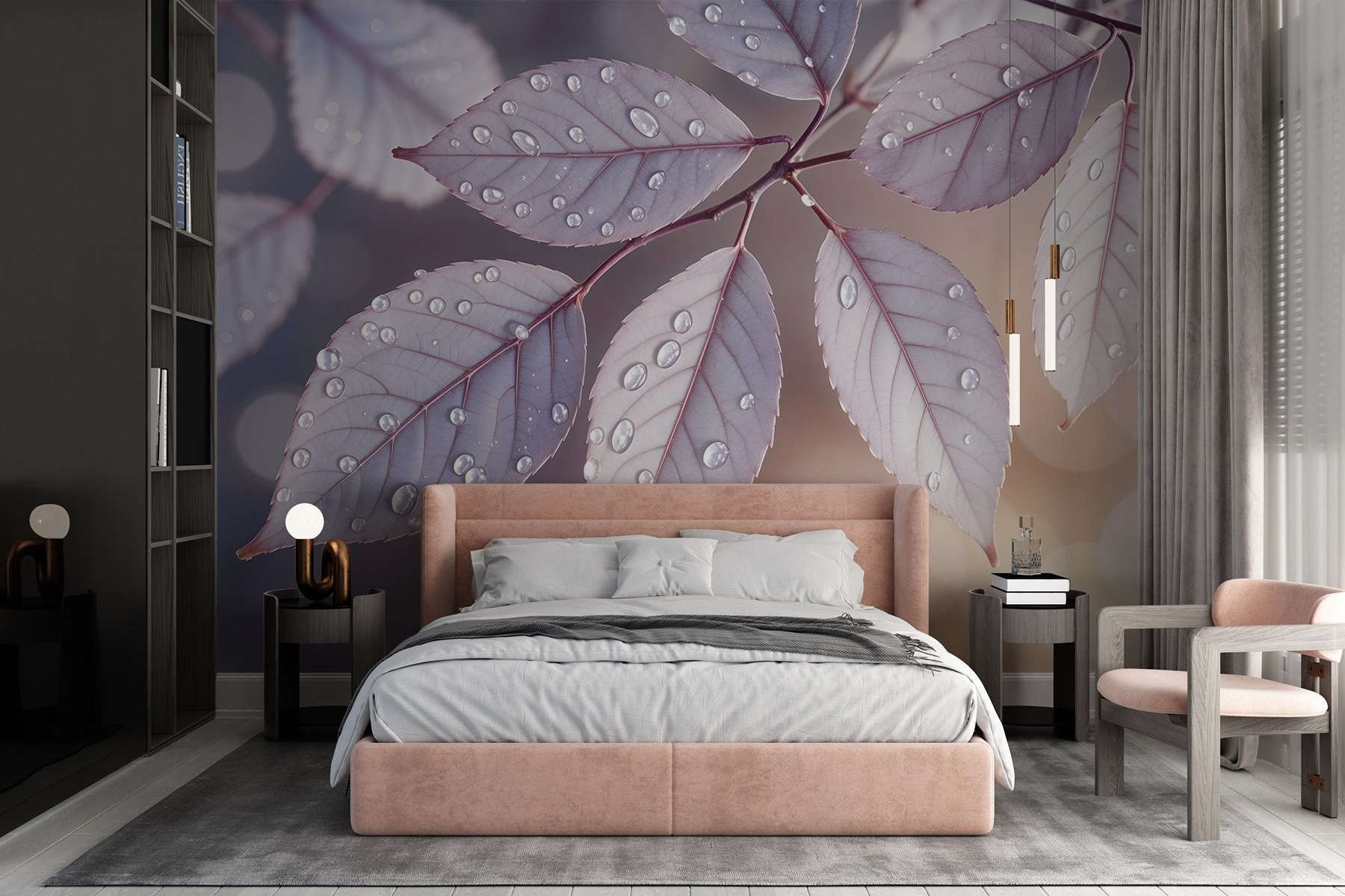 Transforma tu espacio con este impresionante mural de delicadas hojas adornadas con gotas de lluvia. Es como llevar un trozo de naturaleza al interior, ¡sin los zapatos llenos de barro! Imagínese que entra en su habitación y, ¡zas!, todos los días le recibe esta relajante escena. El suave efecto de acuarela añade un toque de ensueño, creando una sensación serena y refrescante.