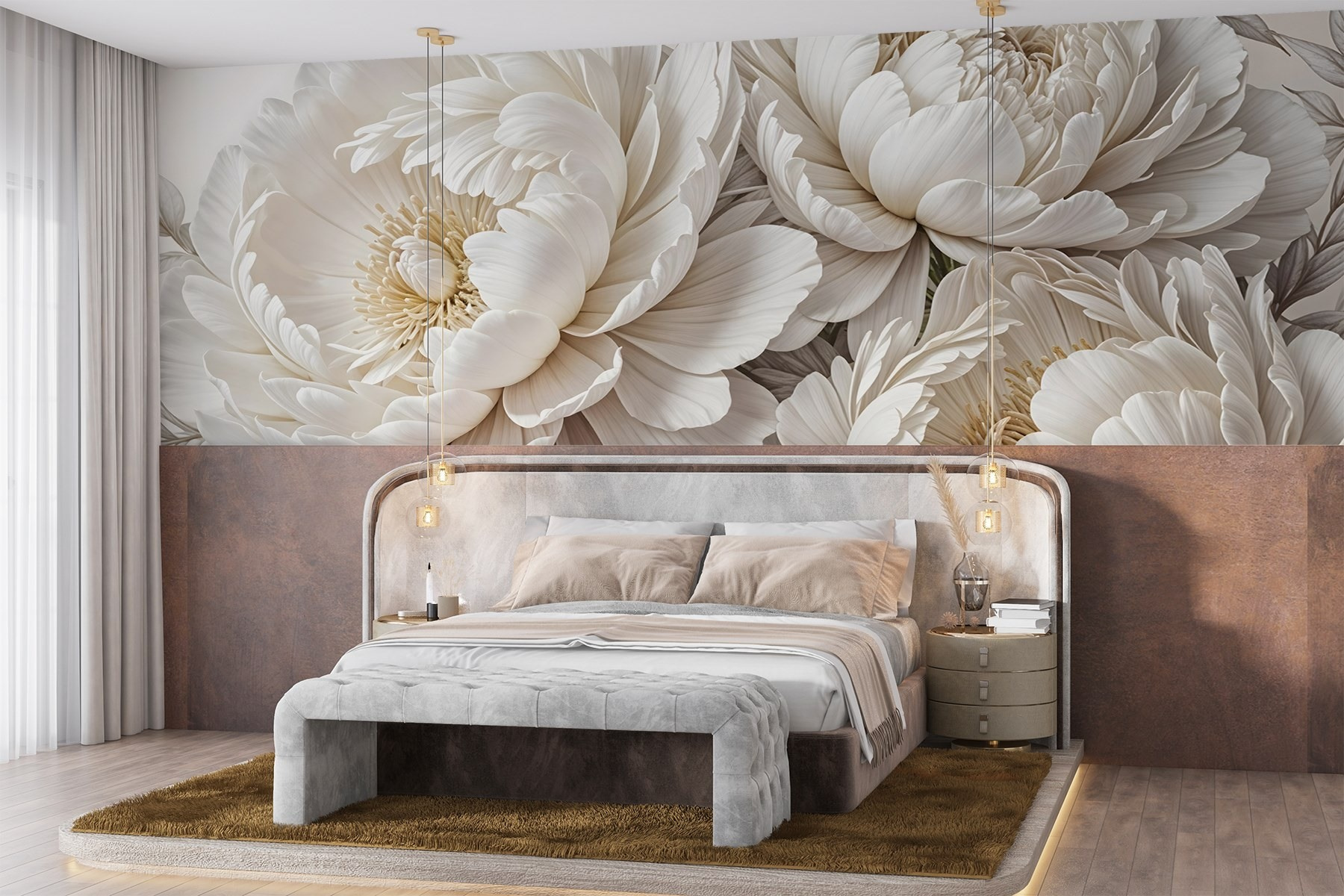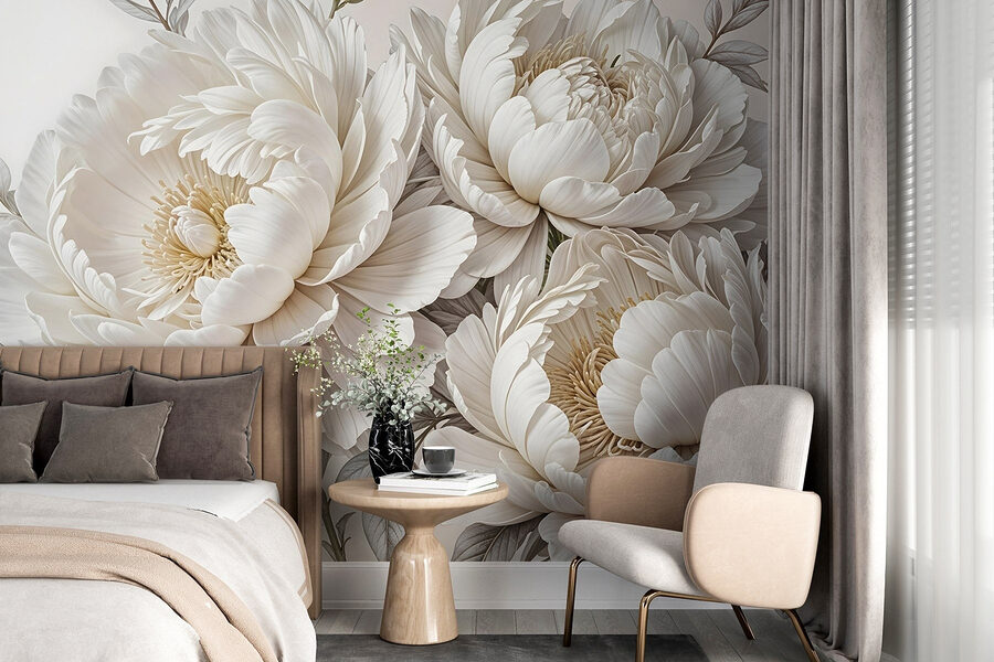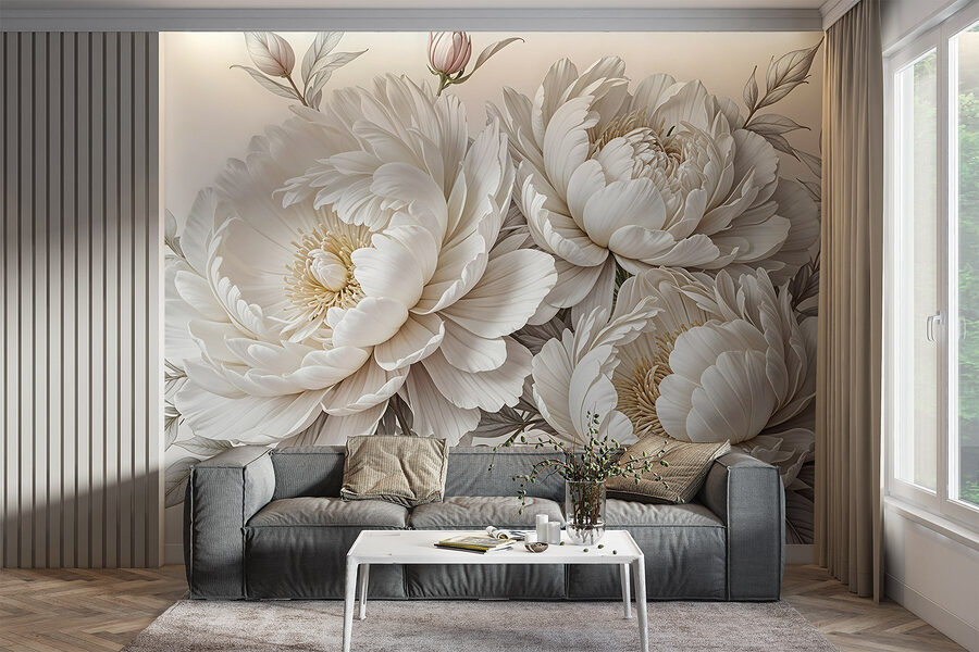 Transforme cualquier habitación en una serena escapada al jardín con este impresionante mural que presenta un ramo de suaves flores blancas. Es como traer un soplo de aire fresco a tu espacio, ¡sin el polen! Cada peonía florece con tanta elegancia que te sentirás inspirado para organizar una fiesta del té, o al menos sentarte con un buen libro y una taza de algo caliente. Los tonos suaves y los delicados pétalos crean un telón de fondo relajante, perfecto para un salón acogedor o un dormitorio tranquilo. Imagínate despertarte así todos los días, ¡eso sí que es levantar el ánimo! Ya sea para un ambiente sofisticado o simplemente para añadir un poco de encanto floral, este mural susurra belleza y paz, invitando a todo el que lo vea a tomarse un momento y respirar hondo.
