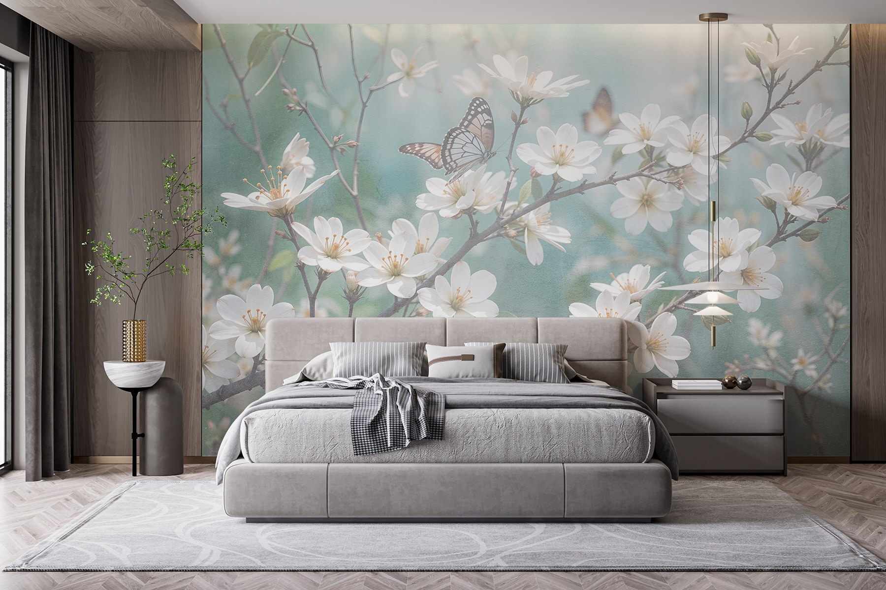 Transforme su espacio con el encantador “Mural Mariposa sobre una flor blanca”. Imagine un sereno jardín japonés, justo en su salón. Las delicadas mariposas de este mural revoloteando sobre puras flores blancas crean una escapada de ensueño. Cada mirada es como adentrarse en una tarde tranquila, llena de suaves brisas y el dulce aroma de las flores. Perfecto para cualquiera que desee añadir un toque de magia natural a su hogar. Es como llevar un pedacito de paz al interior, ¿quién no querría eso? Ya sea en un rincón acogedor o como elemento decorativo, este mural despertará la alegría e inspirará las ensoñaciones.