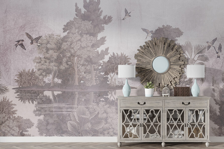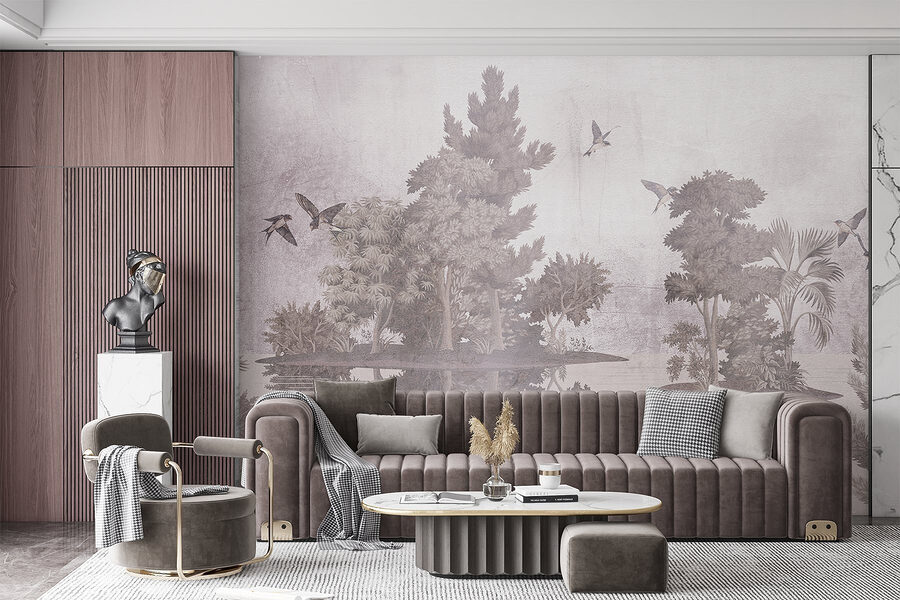 Imagine un refugio sereno donde los pájaros vuelan graciosamente por encima de los frondosos árboles, capturados para siempre con asombroso detalle. Este mural, “Pájaros volando sobre árboles”, envuelve tu espacio en un suave abrazo de naturaleza. Imagínatelo en un rincón acogedor o en un salón vibrante: es como llevar un trozo de aire libre al interior, menos los mosquitos ocasionales. Los tonos suaves y los delicados reflejos crean un ambiente tranquilo, perfecto para relajarse después de un largo día. Acurrucado con un libro o tomando un té, es difícil no sentirse como un explorador soñando despierto. Deja que tus paredes cuenten una historia: ¡es la naturaleza en estado puro!