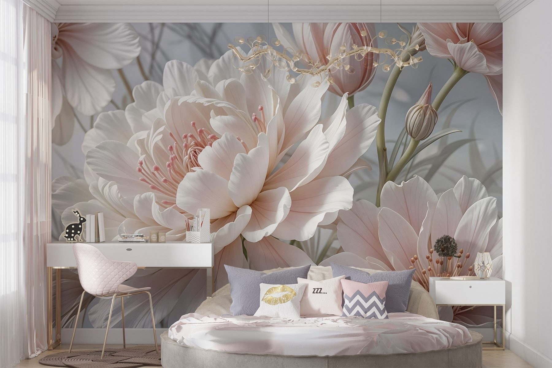 Transforma cualquier habitación en un oasis de ensueño con este encantador mural, “Delicate Blooms in Soft Pastel Hueses”. Imagina despertarte con un estallido de preciosas peonías y tulipanes, con sus suaves pétalos susurrando dulces palabras mientras la luz baila entre sus curvas. Es como llevar un jardín al interior, ¡sin la regadera ni los molestos bichos! Los suaves tonos pastel crean un ambiente tranquilo que hace que cada espacio parezca un poco más sereno. Perfecto para un acogedor rincón de lectura o una animada sala de estar, este mural invita a la relajación y al encanto. Es difícil no sonreír cuando se está rodeado de tanta belleza; ¡es como un cálido abrazo para sus paredes!