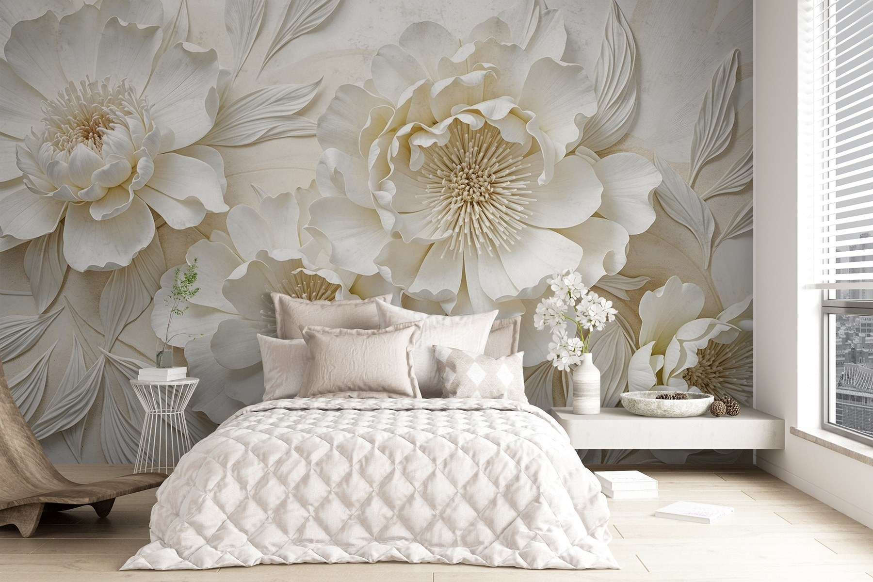 Transforma tu espacio con los “Murales Flores Blancas con Hojas”. Imagínese entrar en un jardín sereno cada vez que entre en la habitación. Estas impresionantes flores, rebosantes de vida, evocan una suave brisa y el dulce aroma de la primavera, sin polen. Los pétalos, suaves y elegantes, bailan sobre el fondo creando un ambiente acogedor. Ya sea en un rincón acogedor o en un gran salón, este mural puede suscitar conversaciones y alegrar paredes apagadas. Imagínatelo en tu casa, infundiendo alegría y creatividad. Es como llevar la naturaleza al interior, pero sin insectos. Perfecto para quienes buscan un toque de estilo sin pasarse.