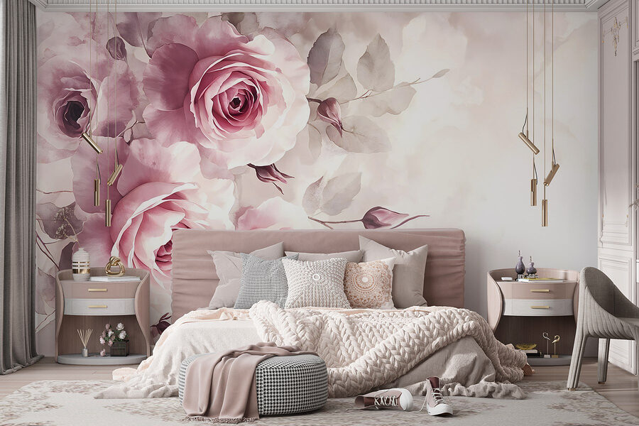 Transforme cualquier habitación en un sereno jardín con este encantador mural de pared que presenta un encantador grupo de rosas rosas. Imagine despertarse cada mañana con estas flores suaves y románticas, como si la naturaleza hubiera decidido decorar su espacio personalmente. Las suaves tonalidades añaden calidez, perfecta para las acogedoras tardes en las que se toma un té o una copa de vino. Además, aportan el toque justo de color sin ser abrumadoras.