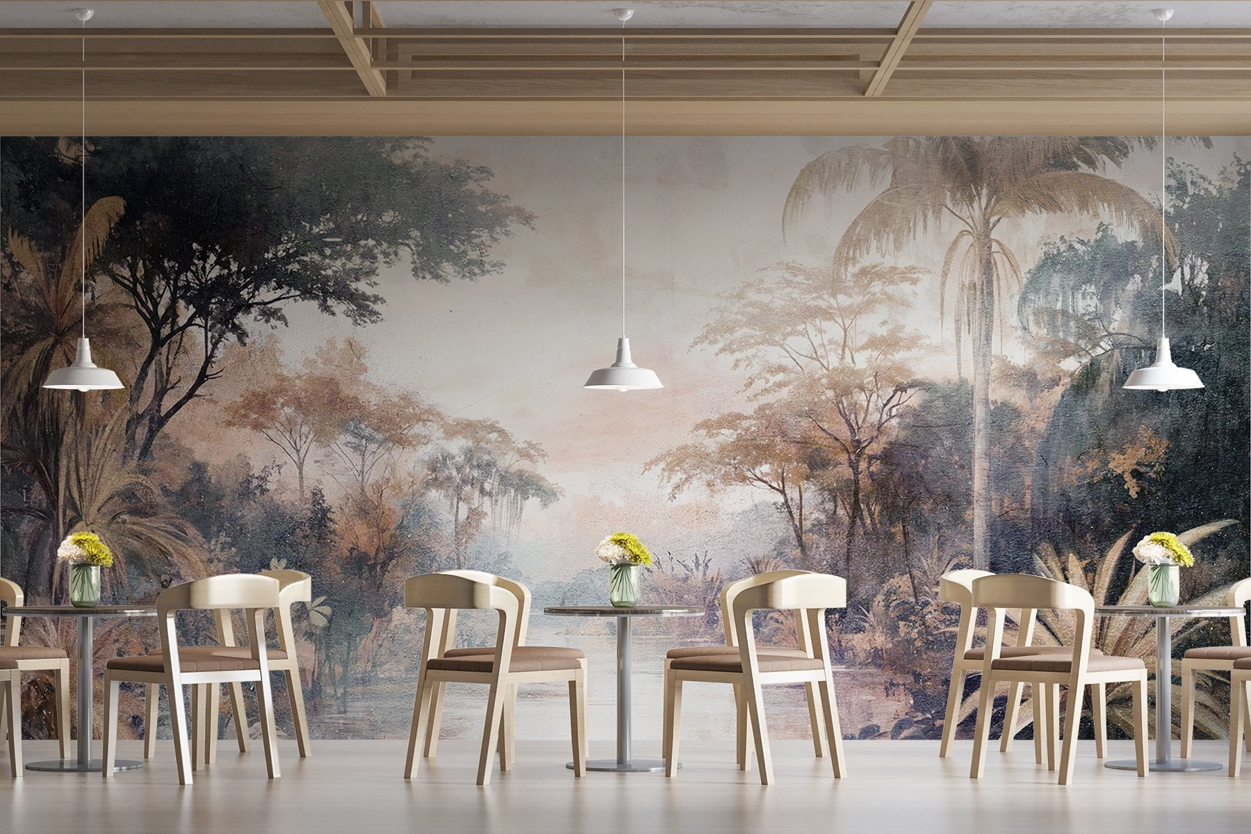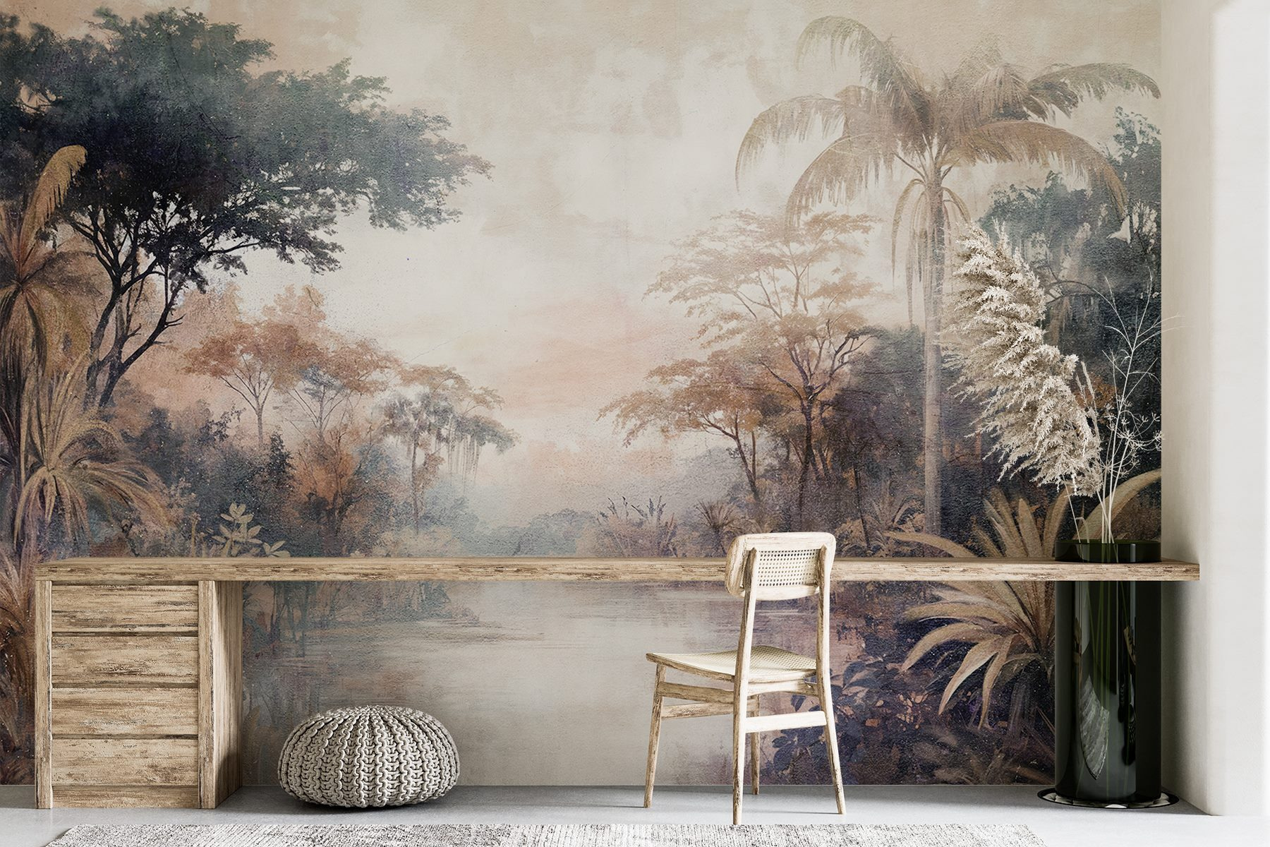 Transforma tu espacio en una escapada serena con los “Murales Río con árboles y plantas”. Imagínese entrar en un paisaje de ensueño donde la exuberante vegetación se encuentra con un tranquilo río: ¡qué ambiente! Este mural no es sólo un revestimiento de pared; es como tener un trozo de naturaleza en casa. Los tonos suaves y terrosos invitan a la calma, haciendo que cada domingo perezoso se sienta como unas mini-vacaciones. Imagínese un rincón de lectura acogedor, este mural como telón de fondo y una taza de té caliente en la mano. De repente, las preocupaciones se desvanecen y la naturaleza susurra dulces palabras. Perfecto para los que desean un toque tropical sin quemarse por el sol. No se trata sólo de decorar, ¡se trata de sentir!