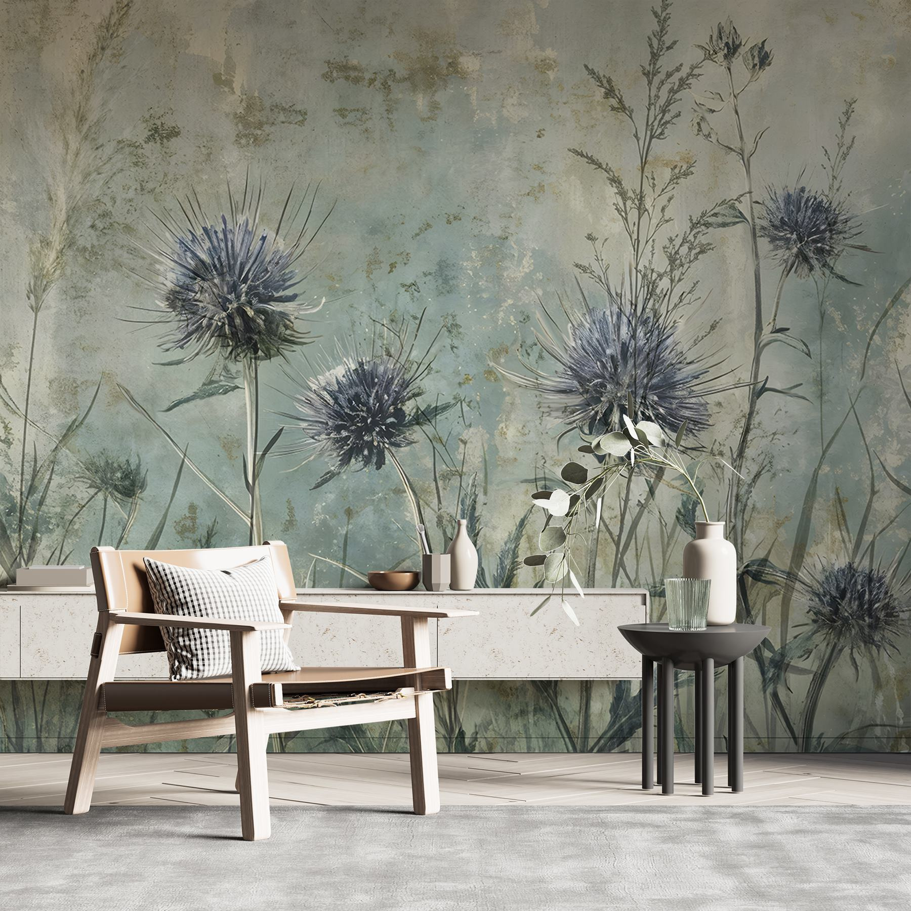 Transforme cualquier espacio en una escapada serena con este encantador mural de flores y plantas. Imagínese despertarse con suaves tonos azules y verdes, donde la hierba alta se mece y las flores vibrantes invitan a sonreír. Perfecto para los amantes de la naturaleza, es como tener un tranquilo jardín en el salón. Los amigos pueden entrar, detenerse y decir: “Vaya, ¿de dónde has sacado esto?”. Entabla conversaciones y atrae a la gente. Los colores suaves aportan una sensación de calma, por lo que es ideal para veladas acogedoras o mañanas tranquilas. ¿A quién no le gustaría volver a casa con un trocito de naturaleza?