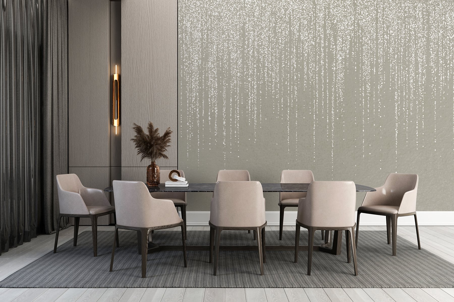 Perfecto para rincones acogedores o incluso para un comedor chic, este mural añade un toque de elegancia moderna. Combínalo con una iluminación cálida y ¡voilá! Tendrás un espacio que susurra serenidad. Sus amigos se detendrán a media frase para admirarlo. Es como un tema de conversación, pero menos parlanchín. Tanto si se trata de un amante del arte como de alguien que busca una renovación con estilo, este mural hace que cada habitación se sienta especial, sin llamar la atención. Un poco de glamour discreto nunca viene mal, ¿verdad?
