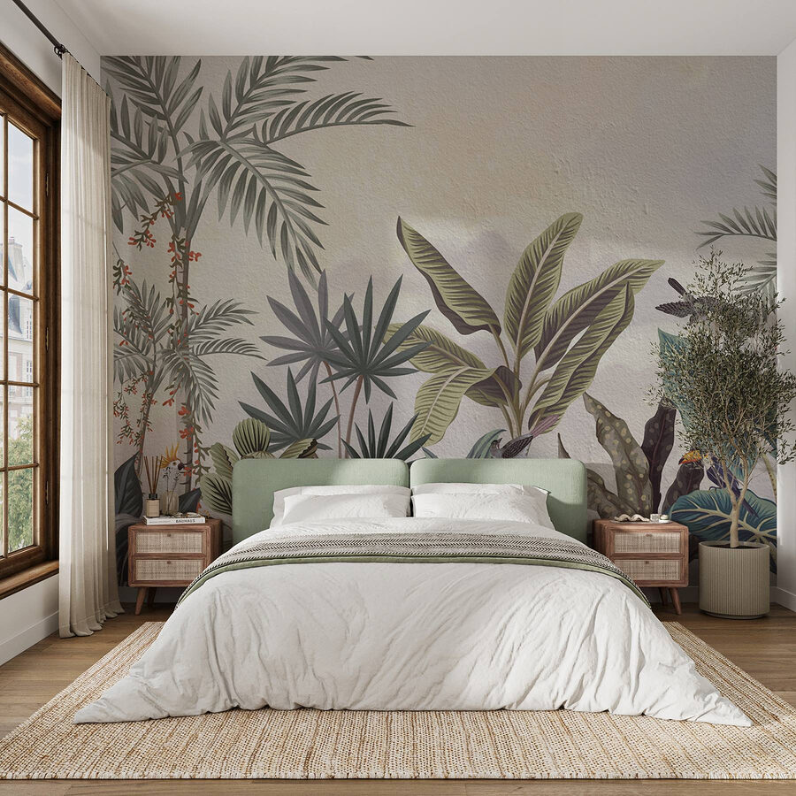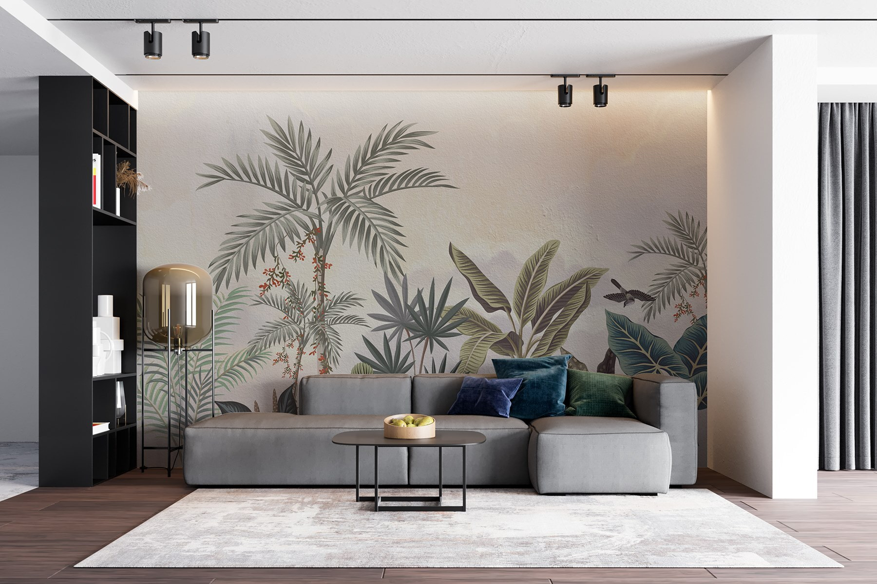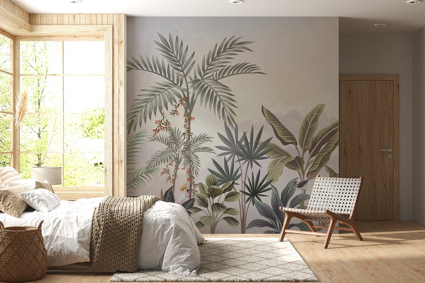 Transforme cualquier espacio con este vibrante mural de pared, con exuberantes plantas y encantadores pájaros. Imagine despertarse con el café en la mano y ser recibido por un oasis tropical justo en su salón. Es como llevar un poco de la selva al interior, sin mosquitos ni animales molestos. La mezcla de verdes, combinada con los toques de color de los detalles florales, aporta un aire refrescante a las paredes aburridas. Tanto si se trata de una pared de acento como de un divertido telón de fondo para reuniones familiares, este mural tiene ese factor sorpresa. Prepárese para recibir cumplidos y soñar con aventuras cada vez que pase por delante.