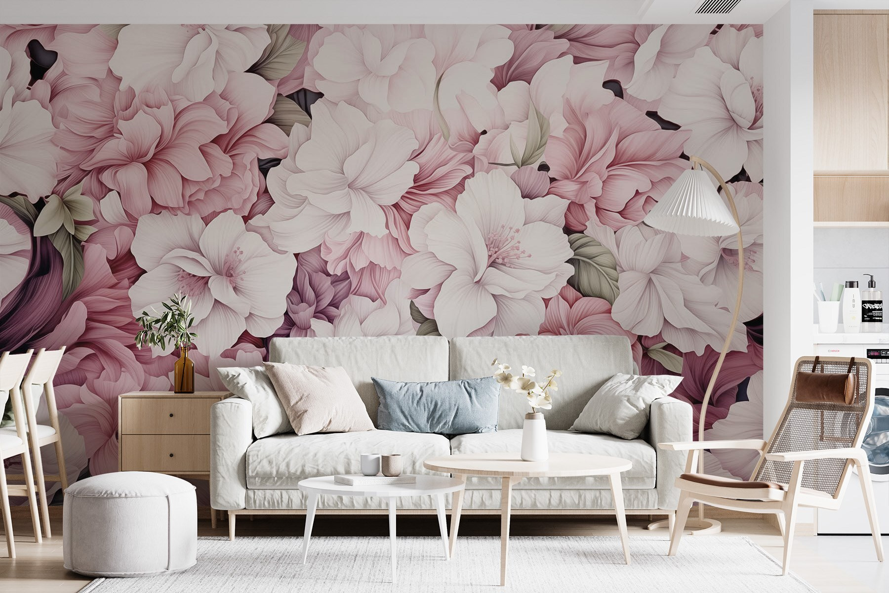 Transforme cualquier habitación en una escapada serena con este impresionante mural de pared, con delicados motivos florales en suaves tonos pastel. Imagínese entrar en un jardín japonés de ensueño, donde las peonías y las rosas bailan suavemente en sus paredes, aportando una sensación de tranquilidad. Es como tener un hermoso día de primavera en casa durante todo el año. Los colores sutiles añaden un toque de elegancia, por lo que es perfecto para espacios acogedores o incluso para una oficina chic. Es posible que se detenga a soñar despierto entre las flores. El abrazo de la naturaleza en casa.