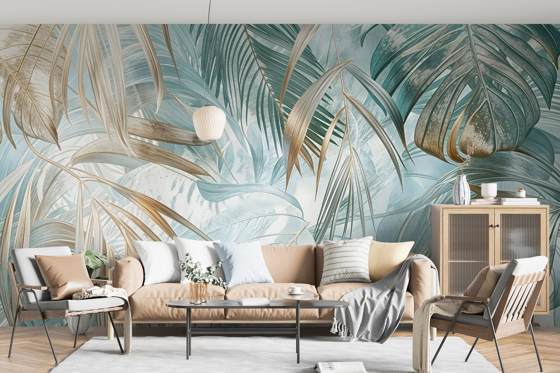 Transforme cualquier habitación en un tranquilo paraíso con el mural “Hojas exuberantes en serena armonía”. Imagínese despertarse en un ambiente tropical de lujo, donde las hojas de palmera bailan suavemente en un fondo suave y ventoso. Prácticamente le invitará a tomar batidos o a soñar despierto con playas de arena. Los colores calmantes crean un escape perfecto del caos exterior, haciendo que se sienta como en vacaciones durante todo el año. Los invitados lo notarán: ¿a quién no le gustaría charlar delante de una pieza tan llamativa? Lleva el exterior al interior y deja que la belleza de la naturaleza susurre paz en tu vida diaria. Es como tener una pequeña jungla en casa, sin los molestos bichos. Perfecto para cualquier espacio que necesite un toque de calma y color.