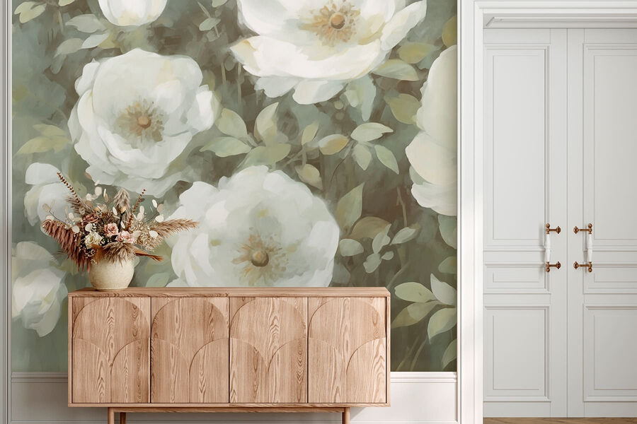 Transforme cualquier habitación en un oasis de paz con la “Pintura mural de flores blancas”. Imagínese que se despierta con estas suaves flores, cuyos delicados pétalos casi susurran dulces palabras a sus paredes. Es como un soplo de aire fresco en un cálido día de primavera, que invita a una sensación de calma y alegría. Imagínese un rincón de lectura acogedor o una cocina luminosa realzada por este mural: no es sólo decoración, es como tener un trocito de naturaleza en casa. Cada mirada a esas encantadoras flores puede despertar una sonrisa, recordándote que la belleza está a menudo en las cosas más sencillas. Además, ¿quién no querría estar rodeado de flores encantadoras? Perfecto para cualquier espacio que necesite un toque de serenidad, este mural es a la vez moderno y atemporal, lo que lo convierte en un impresionante tema de conversación.