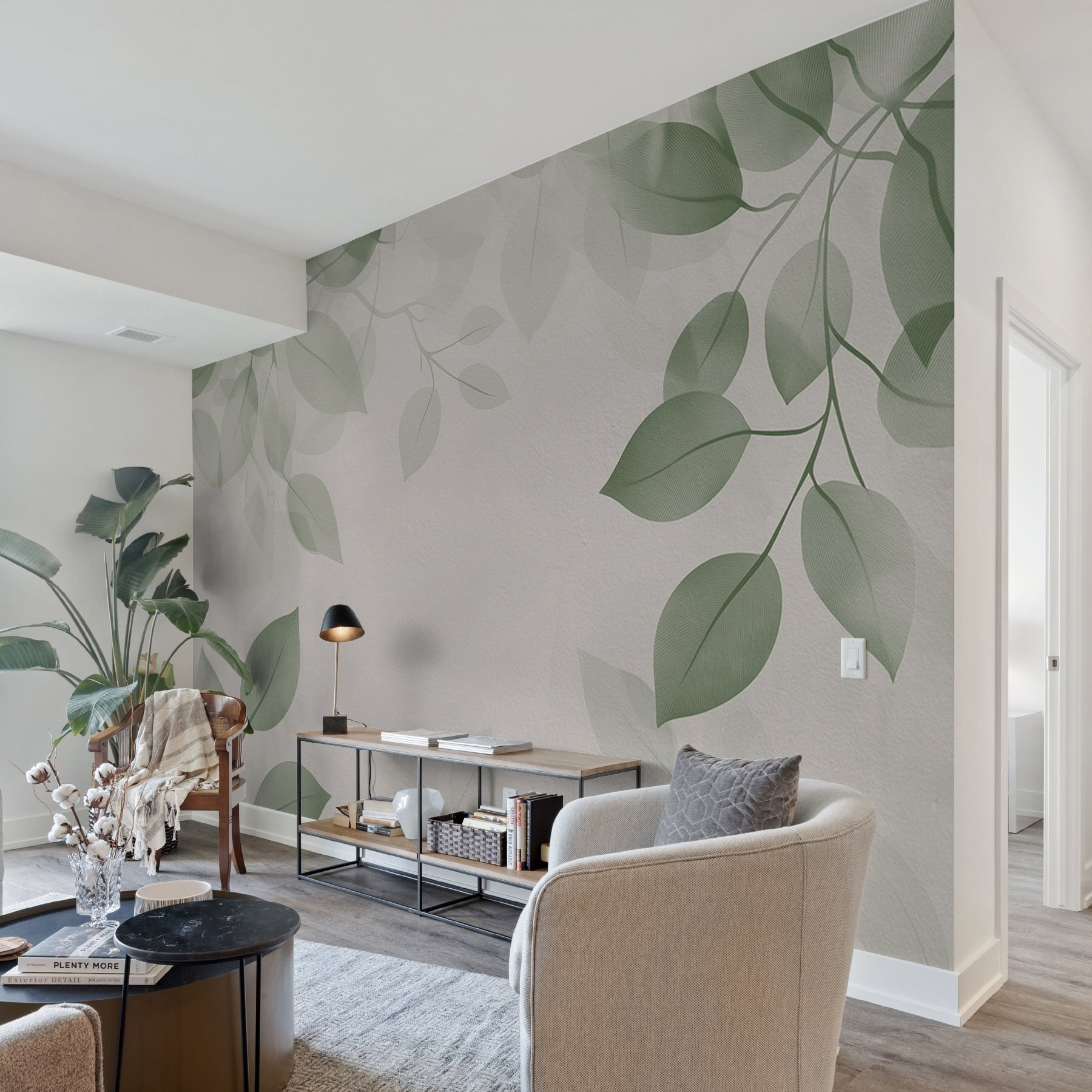 Transforme su espacio en una escapada serena con este impresionante mural de pared con delicadas hojas verdes sobre un fondo blanco nítido. Imagine entrar en una habitación iluminada por el sol donde la naturaleza susurra suavemente a su alrededor. Los tonos suaves y los diseños fluidos crean una atmósfera relajante que se siente como un abrazo acogedor. Imagínese tomando el té en su sillón favorito, rodeado de esta frondosa maravilla. Perfecto para una sala de estar o un dormitorio tranquilo, este mural invita a la energía fresca sin ser demasiado exagerado. Es una forma sencilla y elegante de traer el exterior al interior, ¡sin necesidad de ser un jardinero!