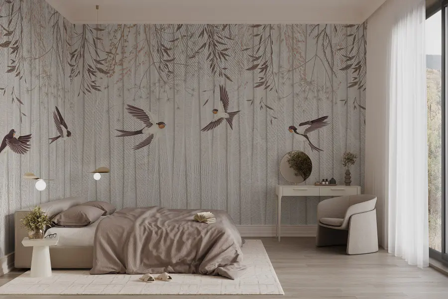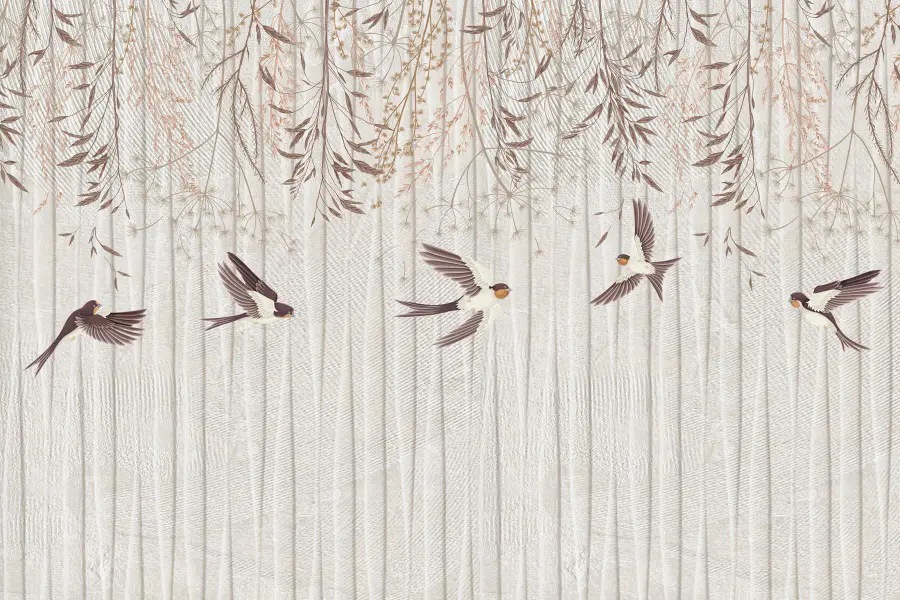 Transforme cualquier habitación en una escapada serena con este precioso mural de pared con pájaros en vuelo. Es como invitar a la naturaleza a tu espacio vital. Imagínese despertándose con estos encantadores pajaritos revoloteando mientras las ramas se mecen suavemente sobre su cabeza. Los tonos suaves y terrosos crean un ambiente tan relajante que es perfecto para un rincón de lectura acogedor o un dormitorio tranquilo. Además, puede que te haga soñar con escapadas tropicales o con tardes tranquilas en un jardín bañado por el sol. ¿Quién iba a decir que un mural podría dar tanta vida? Imagínate las conversaciones que suscitará entre los amigos que se pasen por allí. ¡Qué delicia!