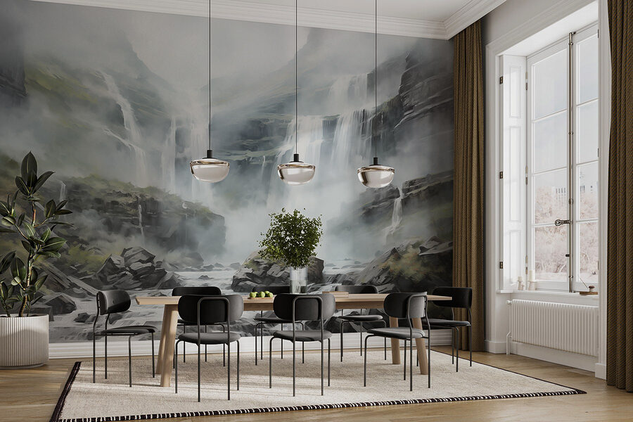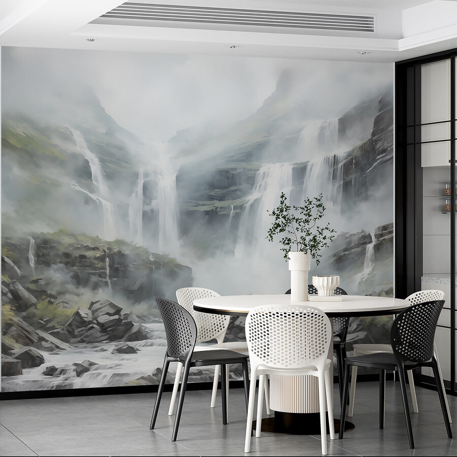 Imagine adentrarse en una serena evasión cada vez que mire a su pared. Este mural, “Cascada en las montañas neblinosas”, captura esa magia a la perfección. Imagínese cascadas cubiertas de suave niebla, rodeadas de exuberante vegetación y terrenos rocosos. Es como la relajante melodía de la naturaleza en el salón de tu casa. El suave fluir del agua casi susurra tranquilidad, invitándole a hacer una pausa y respirar. Incluso puede que tus amigos presuman de sus minivacaciones en tu casa, ¿y quién no querría eso? Es una forma ingeniosa de llevar un trozo de naturaleza al interior. Perfecto para cualquiera que sueñe con escapadas tranquilas, este mural te invita a un mundo donde el estrés simplemente… se desvanece.
