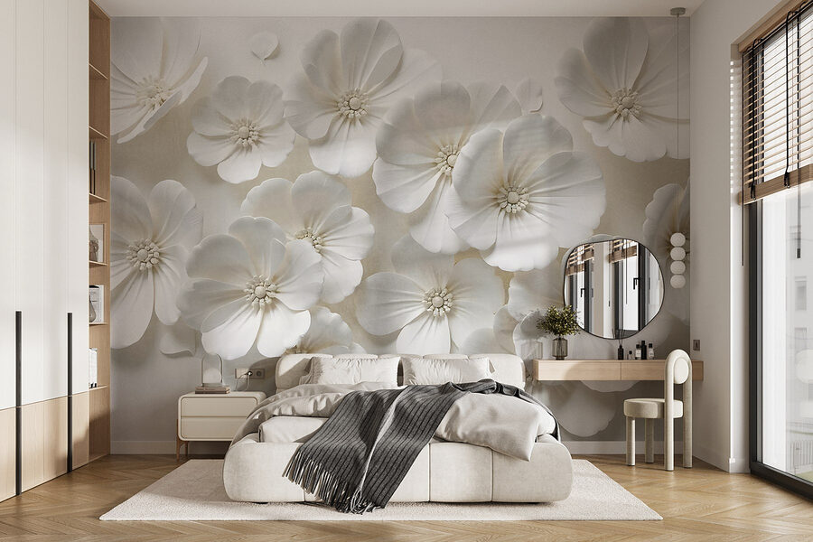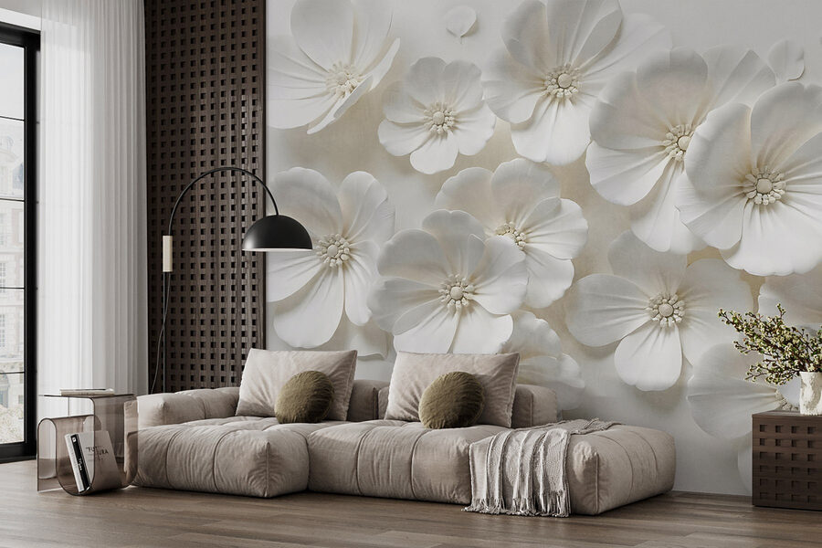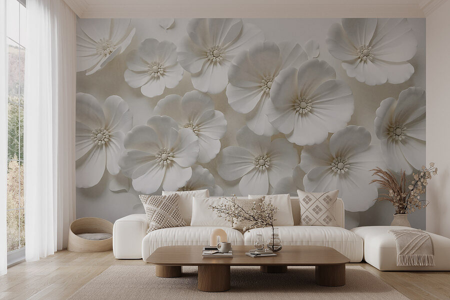 Estas elegantes flores añaden un toque de belleza natural, perfecto para un salón o un acogedor rincón de lectura. Imagínate acurrucándote con un libro, con los suaves pétalos blancos creando un telón de fondo que desprende alegría y tranquilidad. No es sólo decoración, ¡es un ambiente! Ya sea tomando el té o soñando despierto, este mural es un encantador recordatorio de las posibilidades que ofrece la floración. Vamos, ¡deja que tus paredes florezcan!
