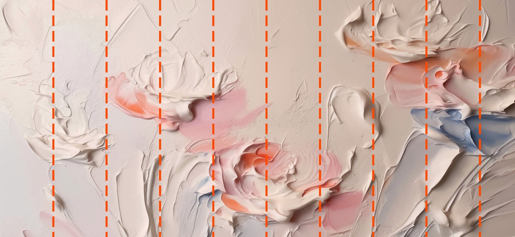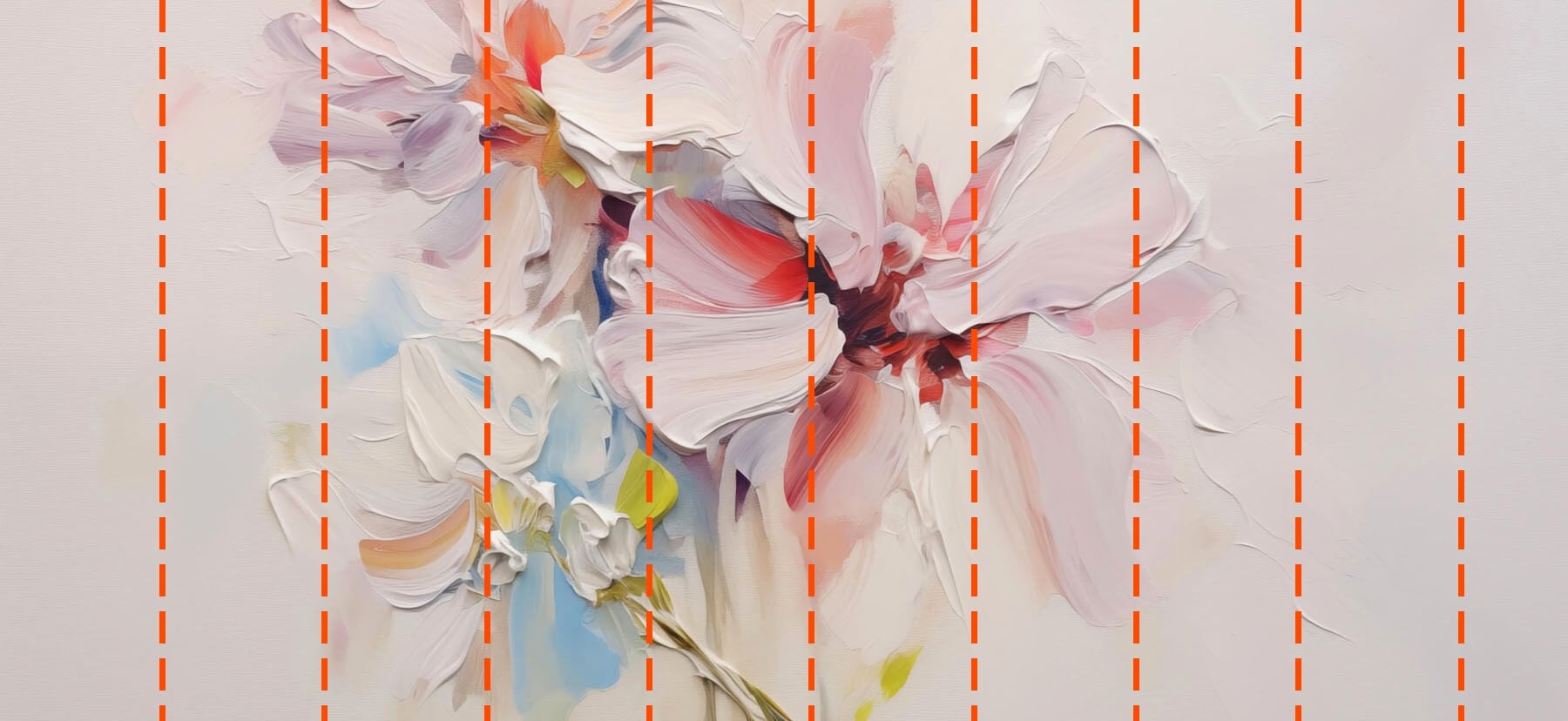 Tu papel pintado se preparará según las dimensiones que nos hayas facilitado durante el proceso de pedido. El lienzo se dividirá en cómodas secciones de hasta 50 cm de ancho cada una.
