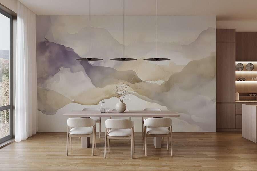 Transforme cualquier espacio con este impresionante mural de acuarela de montañas. Es como traer un trozo de naturaleza serena a tu casa, sin las botas de montaña. Los tonos suaves combinan a la perfección, creando un telón de fondo de ensueño que invita a la calma, perfecto para veladas acogedoras o para un tranquilo café matutino.