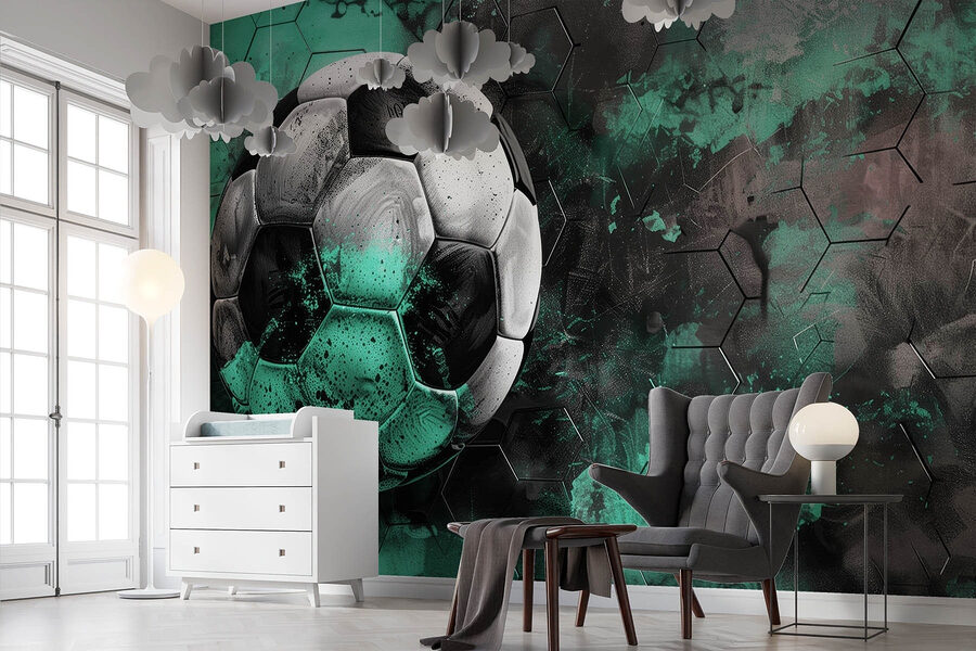 Transforme su espacio con este impresionante mural de pared con un balón de fútbol salpicado contra un vibrante fondo verde y negro. Es como llevar la emoción del fútbol al salón de tu casa, ¡sin los tacos en la alfombra! Los colores llamativos y el diseño dinámico podrían provocar fácilmente algunos debates amistosos sobre quién es el mejor jugador, pero no te olvides de las palomitas para esos momentos del día de partido. Perfecto para los amantes del deporte o para cualquiera que quiera dar un toque divertido a su decoración, este mural fomenta las conversaciones animadas y puede que incluso haga soñar despierto con ese gol perfecto. Ya sea en una sala de juegos, en la habitación de un niño o incluso en la oficina, ¡seguro que levanta el ánimo y hace que esas paredes cobren vida! ¿Quién iba a decir que el fútbol podía ser tan elegante?