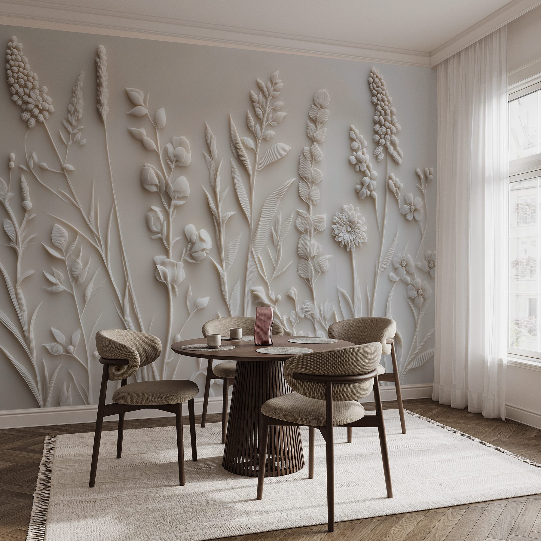 Transforme su espacio con este impresionante mural de pared con un delicado diseño de flores y hojas blancas. Imagínese entrar en una habitación llena de suaves toques de naturaleza, donde cada mirada se siente como un soplo de aire fresco. Este mural no se queda ahí; le invita a entrar, casi susurrando historias de jardines serenos y tardes perezosas. Perfecto para crear un oasis de calma en su hogar, es como tener un jardín secreto en la pared. Tanto si estás preparando café como relajándote con un libro, este diseño añade un toque chic inspirado en la naturaleza que hace que cada momento sea un poco más dulce. Es sencillo y llamativo a la vez, un hermoso telón de fondo que puede desatar la alegría con su elegancia sin esfuerzo. ¿Quién no querría rodearse de eso?