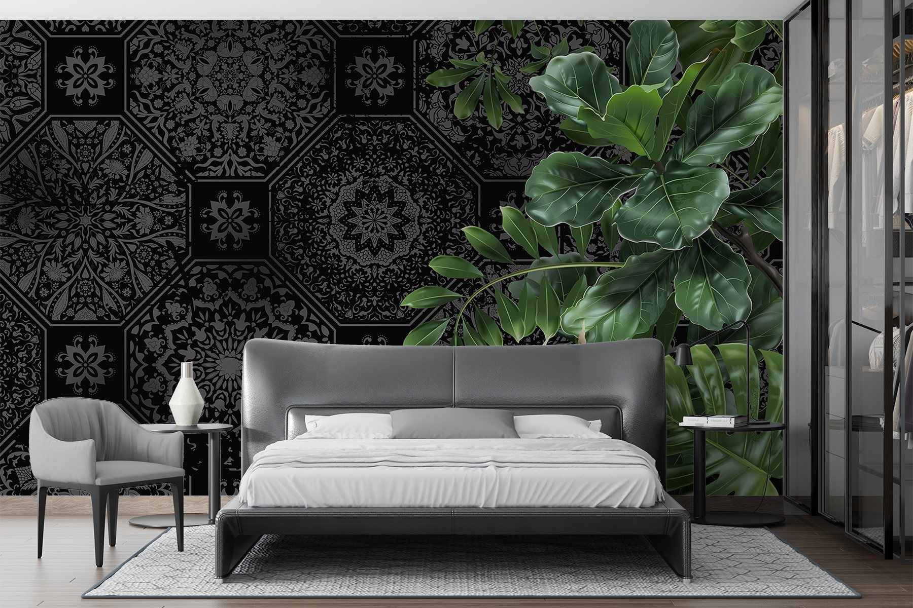 Transforme su espacio con este impresionante papel pintado en negro y gris con exuberantes hojas verdes. Imagínese entrar en una habitación que parece una escapada tropical. Los intrincados patrones geométricos proporcionan un fantástico telón de fondo, mientras que esas hojas vibrantes aportan un toque de vida y energía. Te sentirás como si estuvieras rodeado de naturaleza, ¡menos los mosquitos, claro! Perfecto para un rincón de lectura acogedor o para una pared llamativa, este mural combina sin esfuerzo la elegancia con un toque salvaje. ¿Listo para vibrar con el estilo? Tus paredes te lo agradecerán.