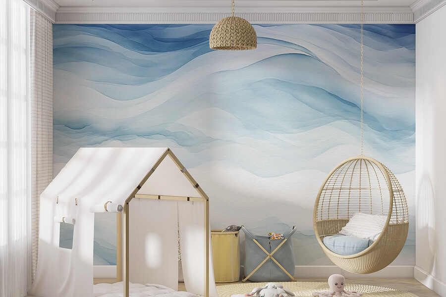 Transforma cualquier pared en una escapada de ensueño con este encantador mural de acuarela. Con sus suaves tonos blancos y azules, es como contemplar las suaves olas rompiendo en la orilla: sereno y relajante. Imagina que te acurrucas con un buen libro, las imágenes tranquilizadoras te envuelven como una manta acogedora. Es perfecto para ese rincón donde tomas tu café matutino o te pones al día con tu serie favorita. Además, tus amigos te dirán: “Vaya, ¿de dónde lo has sacado?”. Un pequeño toque de creatividad puede llegar muy lejos, y la sutil elegancia de este mural lo convierte en una elección destacada para cualquier espacio.