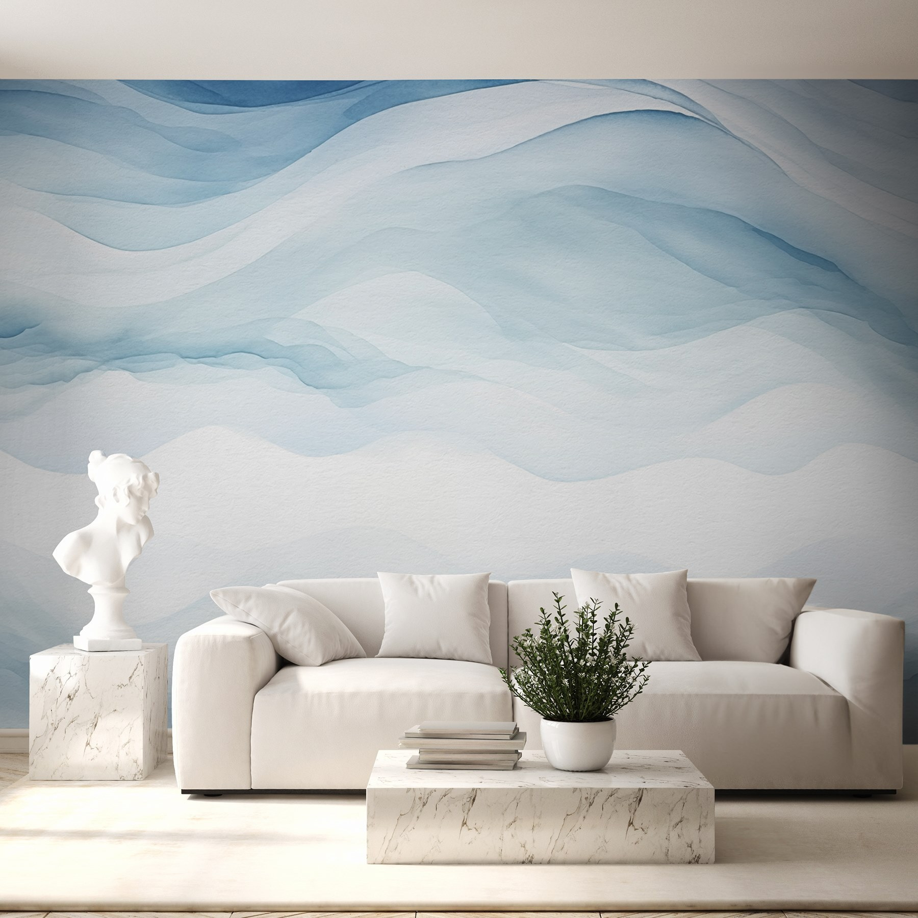 Transforma cualquier pared en una escapada de ensueño con este encantador mural de acuarela. Con sus suaves tonos blancos y azules, es como contemplar las suaves olas rompiendo en la orilla: sereno y relajante. Imagina que te acurrucas con un buen libro, las imágenes tranquilizadoras te envuelven como una manta acogedora. Es perfecto para ese rincón donde tomas tu café matutino o te pones al día con tu serie favorita. Además, tus amigos te dirán: “Vaya, ¿de dónde lo has sacado?”. Un pequeño toque de creatividad puede llegar muy lejos, y la sutil elegancia de este mural lo convierte en una elección destacada para cualquier espacio.