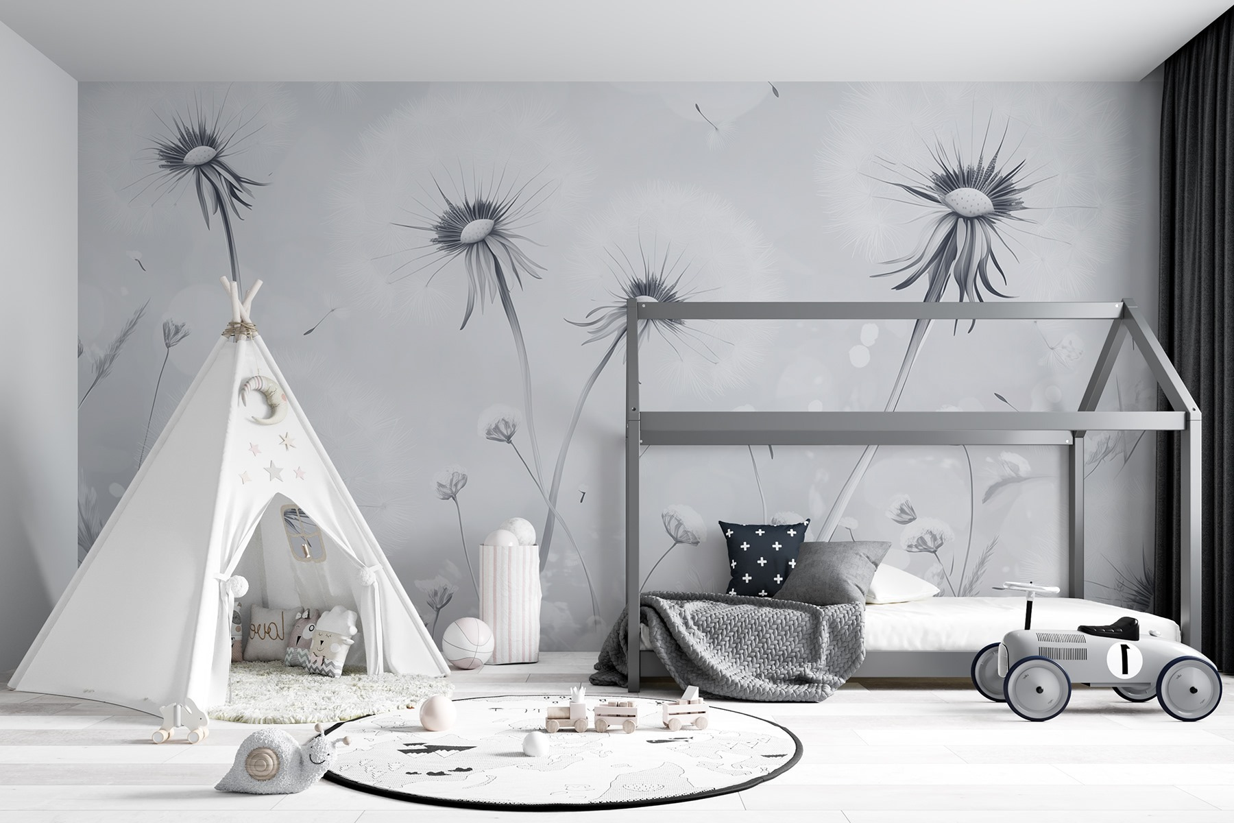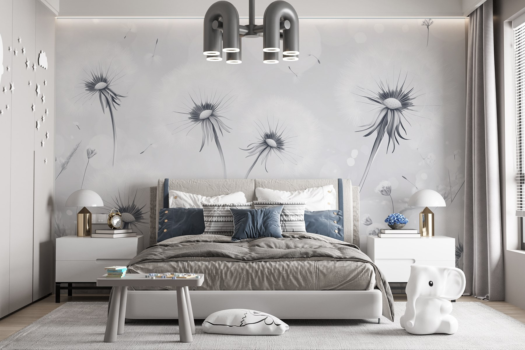 Transforme cualquier habitación con este encantador mural que presenta un grupo de ensueño de dientes de león mecidos por una suave brisa. Imagínate recostado en tu sillón favorito, con la luz del sol entrando por la ventana, y perdiéndote en los delicados detalles de cada cabeza de diente de león. Hay algo irresistiblemente caprichoso en los dientes de león, ¿verdad? Casi puedes oírlos susurrar secretos en los cálidos días de verano. Este mural añade un toque del encanto de la naturaleza sin el molesto polen. Perfecto para los amantes de las flores que prefieren tenerlas en la pared en lugar de en un jarrón.