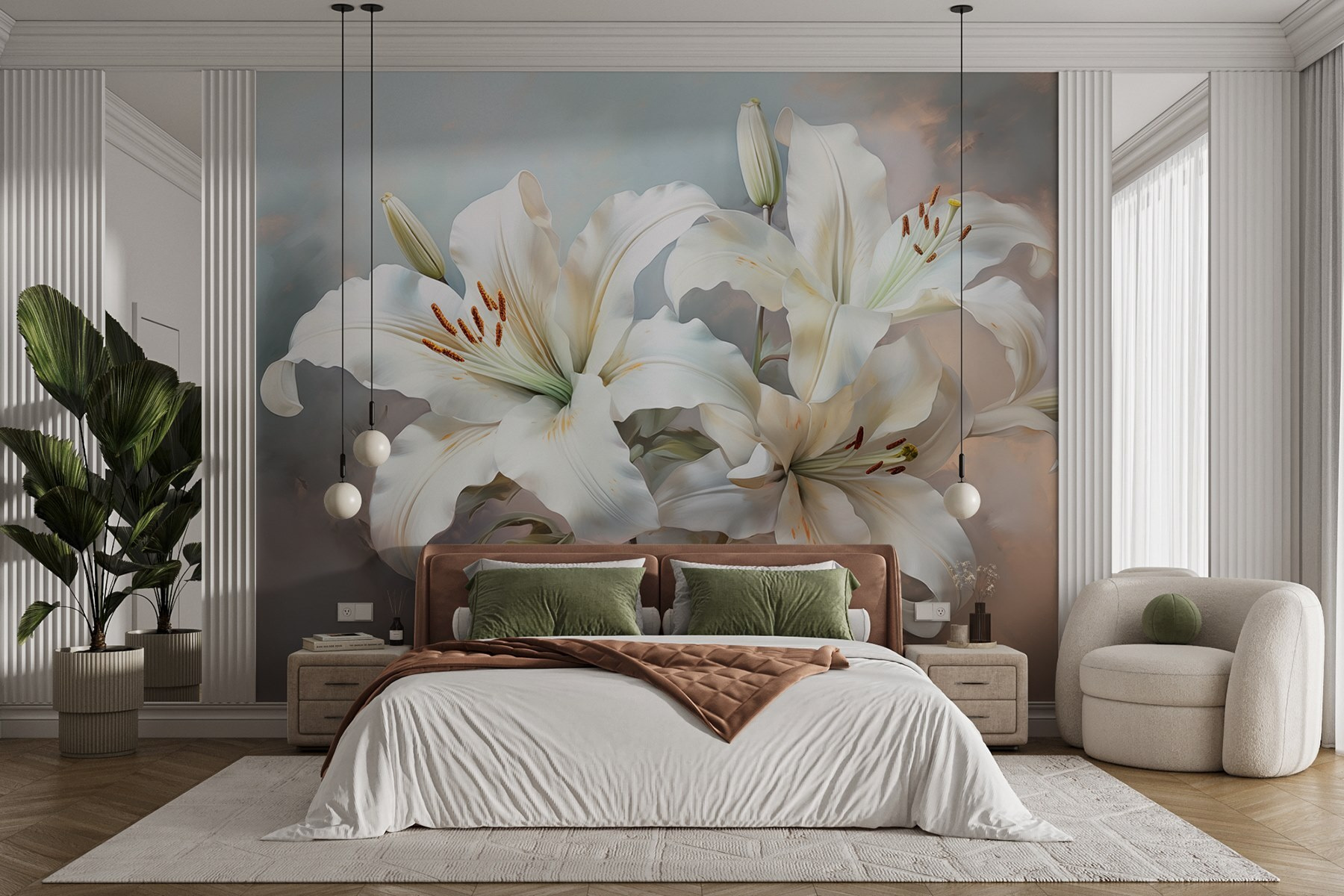 Transforme su espacio en un refugio sereno con el mural de pared “Lirios delicados en tonos suaves”. Imagínese que entra en una habitación en la que suaves lirios le dan la bienvenida, susurrándole elegancia. Los colores suaves son como un abrazo acogedor, perfecto para alegrar ese pequeño rincón donde toma su café de la mañana o se relaja después de un largo día. A todo el mundo le gusta una buena historia de flores, y estos lirios podrían inspirar sueños de picnics primaverales y tardes de descanso. Añada este mural y verá cómo cambia el ambiente: la habitación parece más luminosa y acogedora. Es como tener un jardín que nunca se marchita.