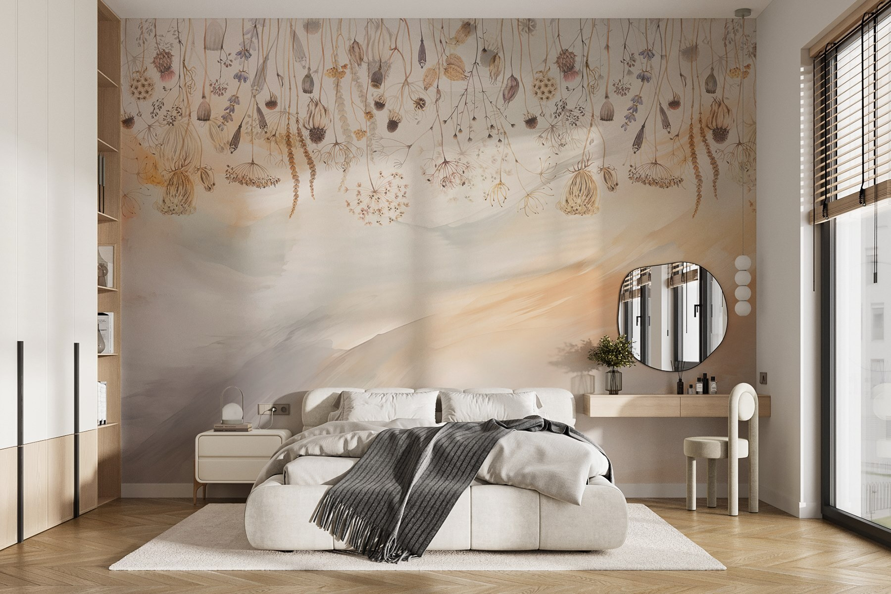 Transforme su espacio con este encantador mural de flores secas y plantas, donde el arte se une a la tranquilidad. Imagínese entrar en un retiro sereno todos los días; los suaves tonos de acuarela bañan sus paredes, creando un telón de fondo pacífico que susurra la belleza de la naturaleza. Perfecto para un rincón de lectura acogedor o un espacio de trabajo inspirador, este mural invita a soñar despierto y a mantener conversaciones amenas. Es como tener un jardín secreto dentro de casa, con flores que nunca se marchitan. Imagínese acurrucándose con una taza de té, empapándose de las relajantes vibraciones… feliz, ¿verdad? Deja que este mural teja su magia en tu vida.