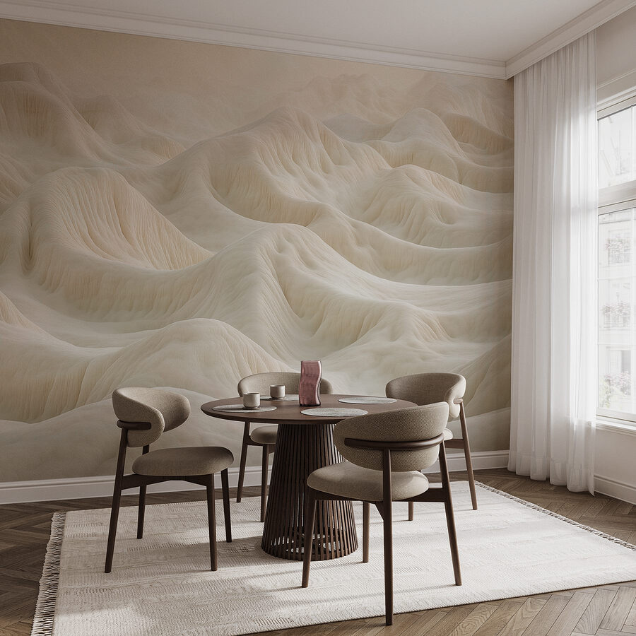 Transforme su espacio en un sereno paraíso invernal con este impresionante mural que muestra una extensión montañosa cubierta de nieve. Imagínese despertarse con suaves y serenos tonos blancos que capturan la tranquila quietud de la naturaleza. Es como llevar la tranquilidad de una mañana helada al interior, un telón de fondo perfecto para esas tardes acogedoras con una taza de chocolate caliente. Imagínate a tus amigos entrando, con los ojos abiertos de placer ante esta pieza única, que da pie a conversaciones sobre aventuras en la cima de la montaña. Ya sea en un dormitorio o en un animado salón, este mural envuelve sin esfuerzo el espacio en tranquilidad, haciéndolo realmente acogedor.