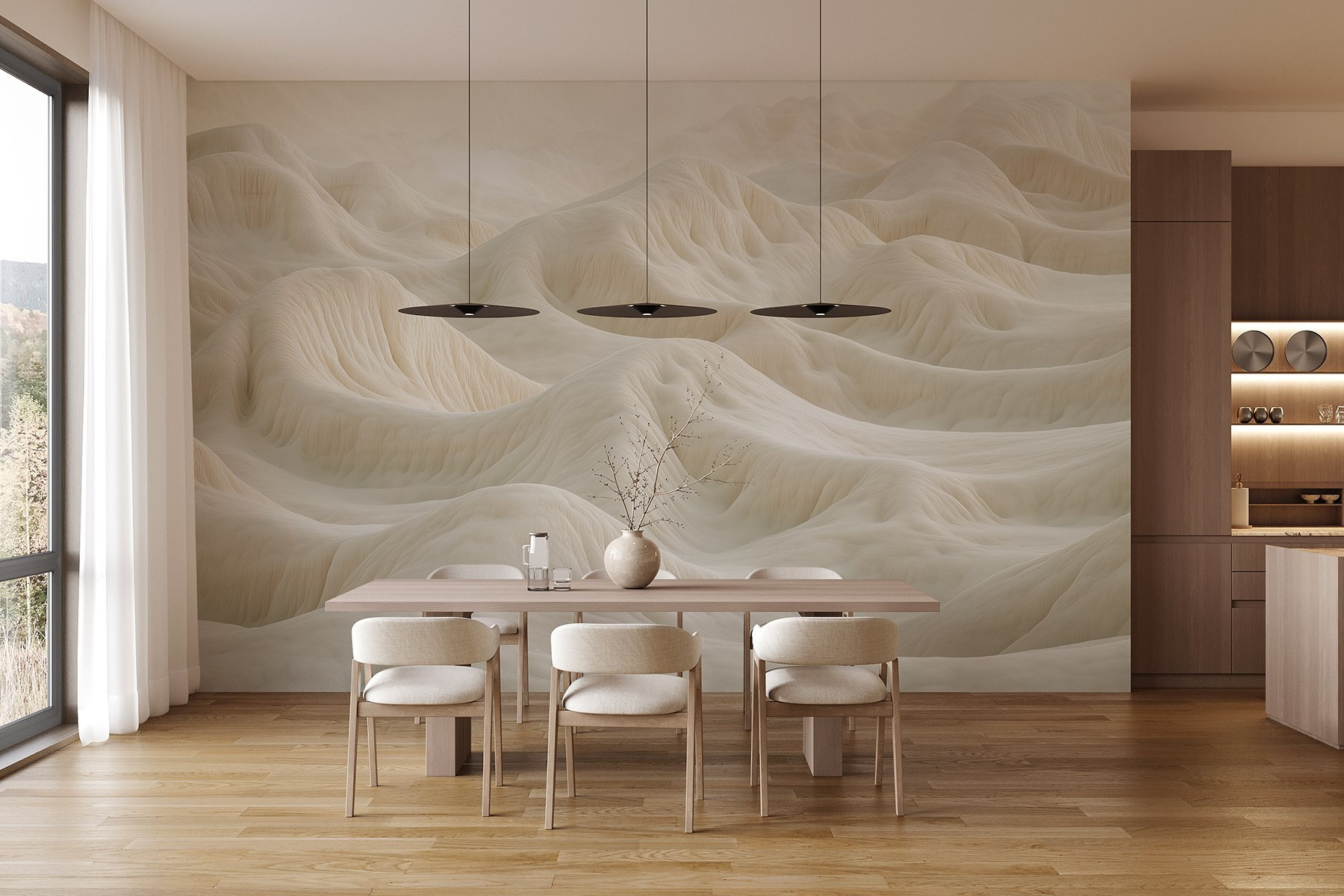 Transforme su espacio en un sereno paraíso invernal con este impresionante mural que muestra una extensión montañosa cubierta de nieve. Imagínese despertarse con suaves y serenos tonos blancos que capturan la tranquila quietud de la naturaleza. Es como llevar la tranquilidad de una mañana helada al interior, un telón de fondo perfecto para esas tardes acogedoras con una taza de chocolate caliente. Imagínate a tus amigos entrando, con los ojos abiertos de placer ante esta pieza única, que da pie a conversaciones sobre aventuras en la cima de la montaña. Ya sea en un dormitorio o en un animado salón, este mural envuelve sin esfuerzo el espacio en tranquilidad, haciéndolo realmente acogedor.