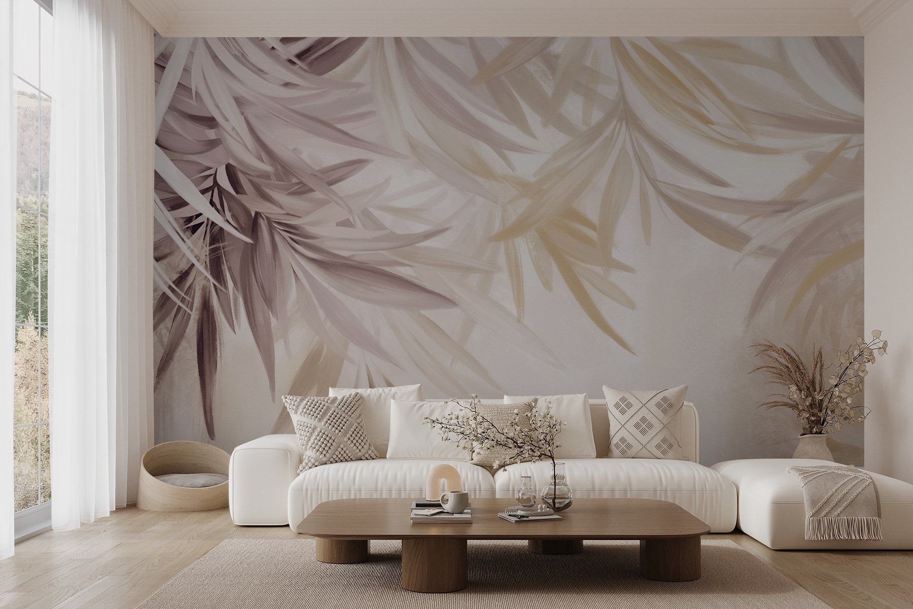 Transforma cualquier estancia en un remanso de paz con este impresionante mural «Nature’s Soft and Serene Palette» (La paleta suave y serena de la naturaleza). Imagínate esto: despertarte cada mañana rodeado de suaves palmeras que susurran tranquilidad a tu día. Sus suaves tonos aportan un toque de felicidad tropical, haciendo que te sientas como si estuvieras de minivacaciones en casa, ¡sin quemarte con el sol!