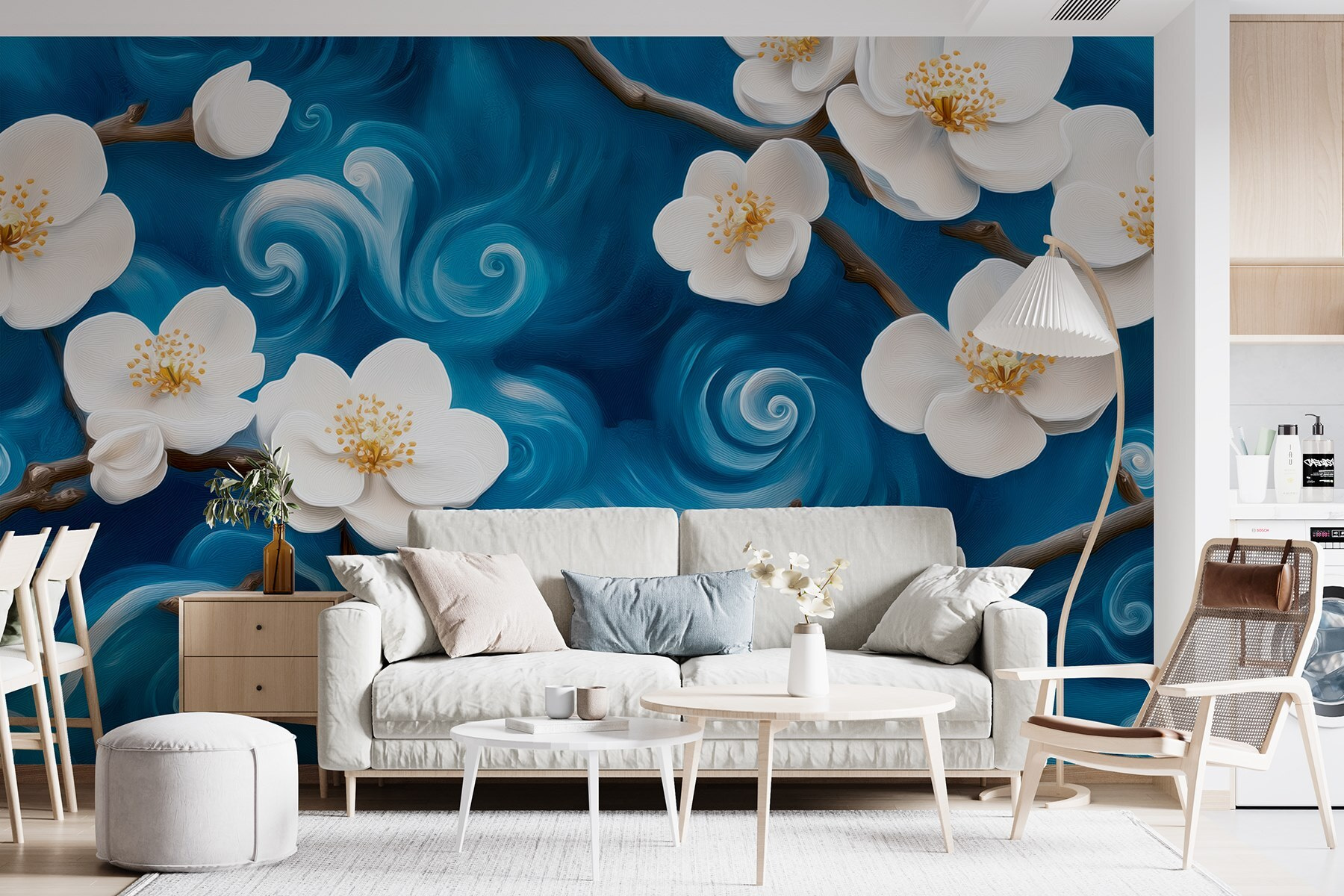 Imagina entrar en tu habitación y ser recibido por delicadas flores que bailan sobre un fondo arremolinado. Suena de ensueño, ¿verdad? Este mural, «Delicadas flores sobre un fondo arremolinado», lleva el encanto de un jardín japonés directamente a tu espacio. El llamativo contraste de los suaves pétalos blancos con los remolinos azul oscuro crea un ambiente sereno y a la vez dinámico. ¡Es como disfrutar de unas minivacaciones cada vez que entras! Perfecto para esos momentos en los que el caos del mundo se cuela en tu vida. Imagínate sentándote en tu sillón favorito, con una taza de té en la mano. Con este mural, es fácil olvidarse del ajetreo del exterior y perderse en su belleza. También es un tema de conversación encantador: ¿quién no querría hablar de un fondo tan impresionante? ¡Transforma tus paredes en un refugio tranquilo!