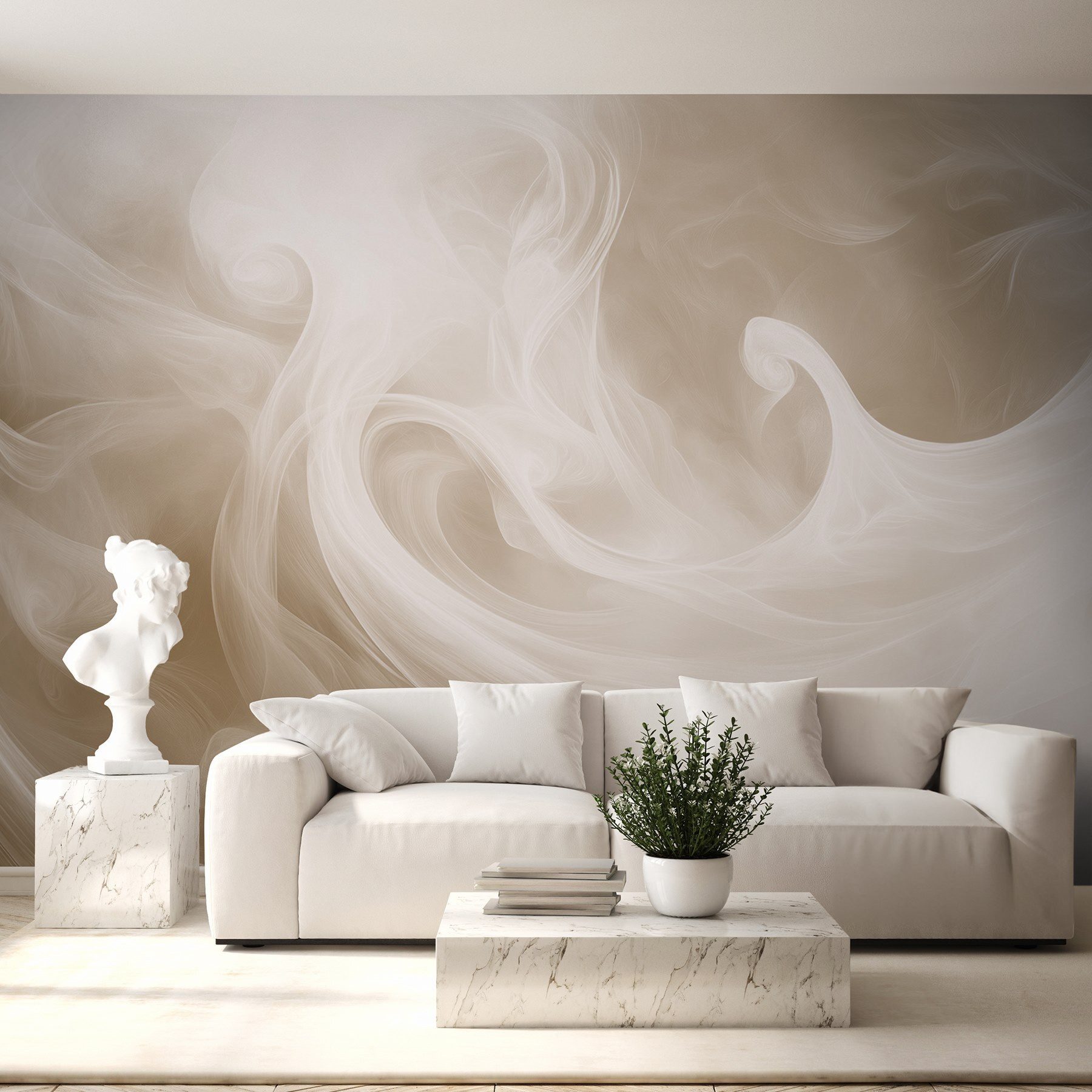 Transform your space with this stunning wall mural, featuring soft white smoke swirling gracefully against a warm light brown backdrop. It feels like a gentle caress for the eyes, bringing a sense of calm and serenity. Imagine sipping your morning coffee in a room that feels light and airy, as though wrapped in a cozy fog. It’s perfect for those who want to evoke a peaceful vibe without being shouty about it. Plus, it’ll have your friends doing double-takes as they wonder if you’ve turned your wall into a piece of art. Embrace the elegance and let every glance transport you to a tranquil oasis.