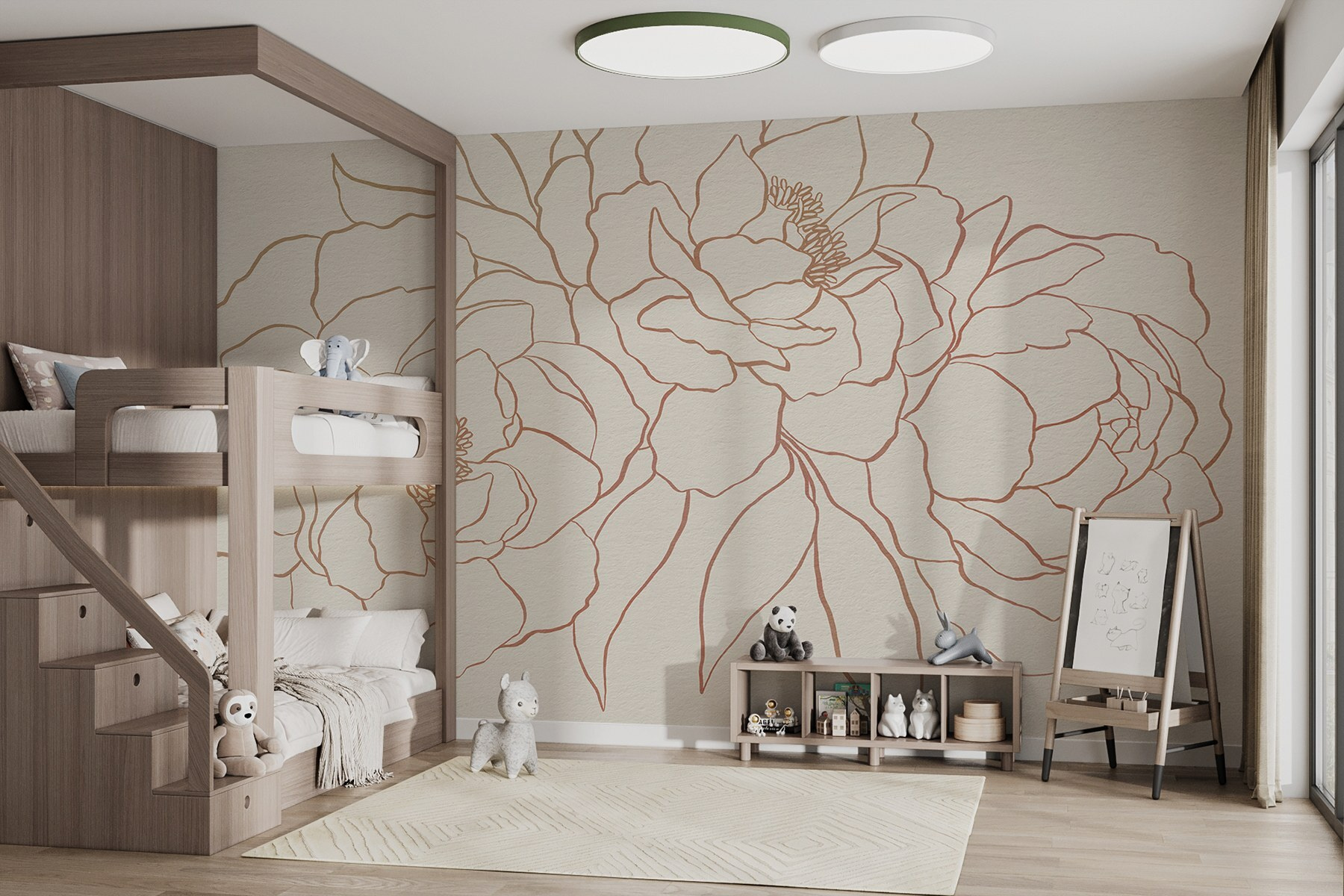 Dale un toque especial a cualquier habitación con este impresionante «Mural de flores». Imagina una pared en blanco transformada en un tranquilo jardín, donde delicadas flores en tonos suaves cobran vida. Estas flores no solo están ahí, ¡sino que dan vida a tu espacio! Imagina tomarte tu café matutino rodeado de esta obra de arte, sintiéndote como si hubieras entrado en un refugio sereno cada día. Es como tener un mini ramo que nunca se marchita. Perfecto para crear un rincón acogedor o un fondo de ensueño para tus selfies de Instagram. ¿Quién no querría un poco de magia floral en su vida?