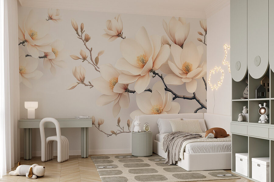 Transforma tu espacio con el mural «Delicate Blossoms in Soft Hues», donde la sofisticación se une a la serenidad. Imagínate entrar cada día en un jardín tranquilo, con esas flores blancas de ensueño que se despliegan con elegancia sobre un fondo suave, susurrando vibraciones de calma. Imagina acurrucarte con un buen libro o tomar un café, rodeado de la belleza de la naturaleza, ¡pero sin polen! No es solo decoración, es como invitar a la primavera a tu salón. Ya sea en un rincón acogedor o en un comedor animado, estas flores están aquí para realzar el ambiente. Solo un toque de elegancia, ¡y voilà! Tus paredes se sentirán al instante como un soplo de aire fresco. ¿Quién diría que un mural podría florecer con tanto encanto?