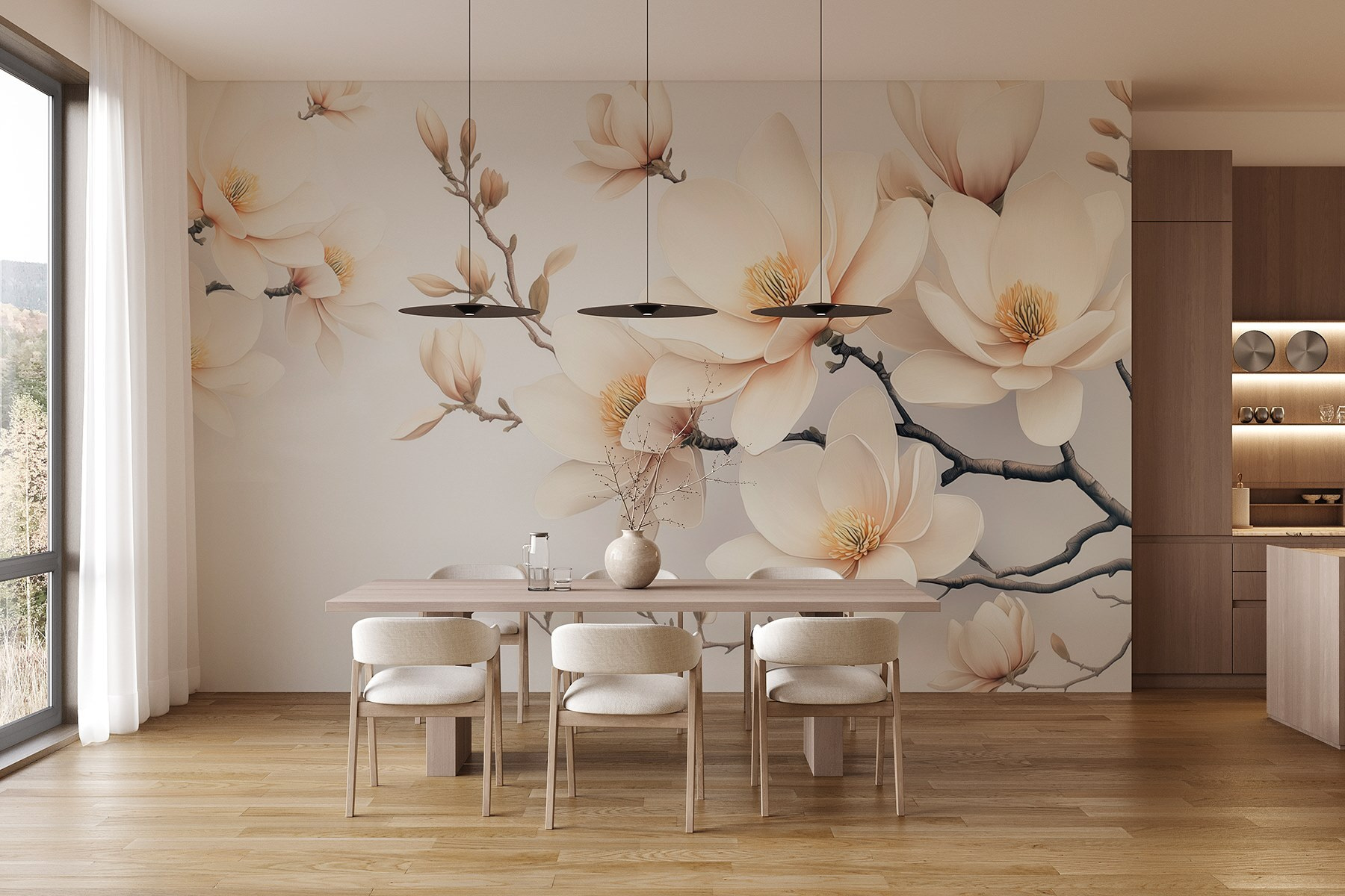 Transforma tu espacio con el mural «Delicate Blossoms in Soft Hues», donde la sofisticación se une a la serenidad. Imagínate entrar cada día en un jardín tranquilo, con esas flores blancas de ensueño que se despliegan con elegancia sobre un fondo suave, susurrando vibraciones de calma. Imagina acurrucarte con un buen libro o tomar un café, rodeado de la belleza de la naturaleza, ¡pero sin polen! No es solo decoración, es como invitar a la primavera a tu salón. Ya sea en un rincón acogedor o en un comedor animado, estas flores están aquí para realzar el ambiente. Solo un toque de elegancia, ¡y voilà! Tus paredes se sentirán al instante como un soplo de aire fresco. ¿Quién diría que un mural podría florecer con tanto encanto?