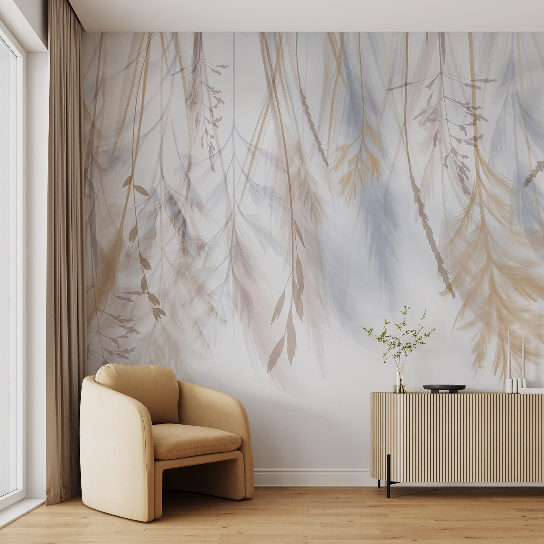 Bring the gentle charm of nature indoors with “Delicate Botanicals in Soft Hues.” This mural feels like a whisper of a garden, swaying just out of reach. Imagine stepping into a peaceful retreat every time you enter your space. Those soft, watercolor-like plants float around, warming up your walls without demanding too much attention. Perfect for creating a cozy reading nook or a serene bedroom, it adds a splash of calm. It’s like a friend who quietly encourages you to breathe deeply and just be. Anyone who sees it might just want to curl up with a cup of tea and a good book—bliss!