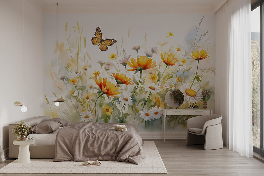 Transforme su espacio en un vibrante jardín con este impresionante mural de pared de una mariposa revoloteando sobre un campo de flores. Aporta un toque juguetón de naturaleza, haciendo que cualquier habitación se sienta fresca y acogedora. Imagínese tomando un café mientras disfruta de esta alegre escena: es como tener un poco de primavera en la pared, sin el dolor de cabeza del polen. Las ráfagas de color pueden levantar tu estado de ánimo e inspirar a los que te rodean. Es el telón de fondo perfecto para un acogedor rincón de lectura o una animada sala de juegos. ¿Quién no querría sumergirse en esta fantasía floral?