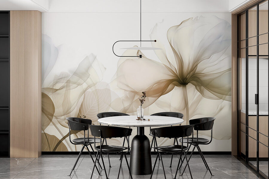 Imagina entrar en un espacio que parece una galería de arte: ¡eso es lo que transmite este mural! «Delicate Hues of Nature’s Beauty» captura la suave elegancia de las flores, como un suave susurro de la propia naturaleza. Es como si un pintor hubiera aplicado delicados colores sobre la pared, invitando a todos a detenerse y respirar un poco más profundamente.