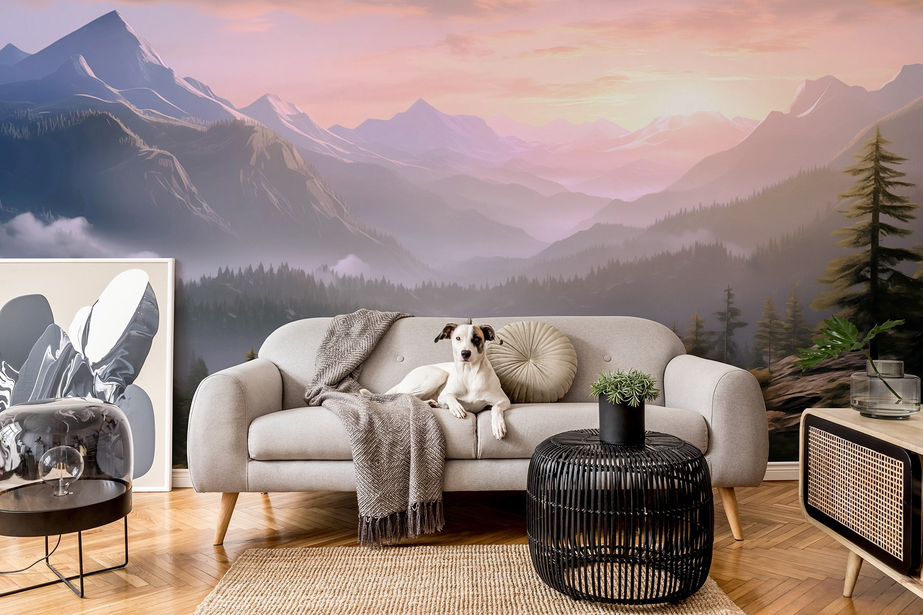 Transform your space with this stunning wall mural, featuring a breathtaking landscape of mountains and trees. Imagine waking up to that soft morning light peeking through the peaks—it’s like a little slice of serenity right at home. The rich greens and gentle hues invite you to breathe deep, as if you’re taking a stroll through the forest. Whether it’s in the living room or a cozy reading nook, this mural adds a touch of nature’s beauty, making every moment feel a tad more peaceful. Friends might even wonder if you’ve secretly relocated to a mountain cabin. Just think of all the cozy vibes! Perfect for nature lovers who need a bit of the great outdoors indoors.